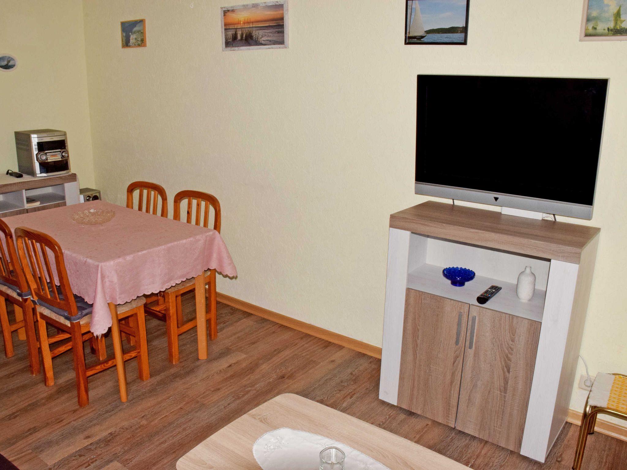 Unser modern und liebevoll eingerichtetes Ferienhaus ist ca. 52 qm groß, bietet Platz für maximal 4 Gäste. Im Wohnraum steht eine bequeme Sitzcouch mit Tisch, ein Schrank , Esstisch mit Stühlen und ein Flachbild-TV.