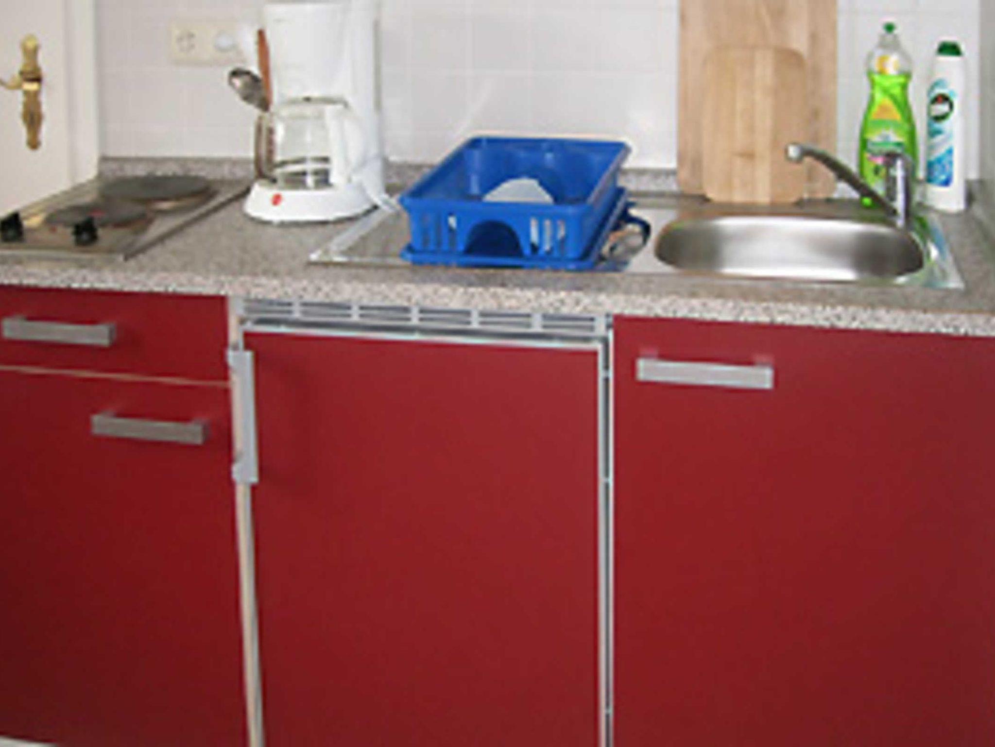 Auf dem Flur steht beiden Zimmern eine kleine Miniküch mit Induktionskochfeld und Mikrowelle zur Verfügung. Dazu hat jedes Zimmer einen Kühlschrank. Vor dem Haus steht eine Terrasse zur gemeinschaftlichen Nutzung zur Verfügung.