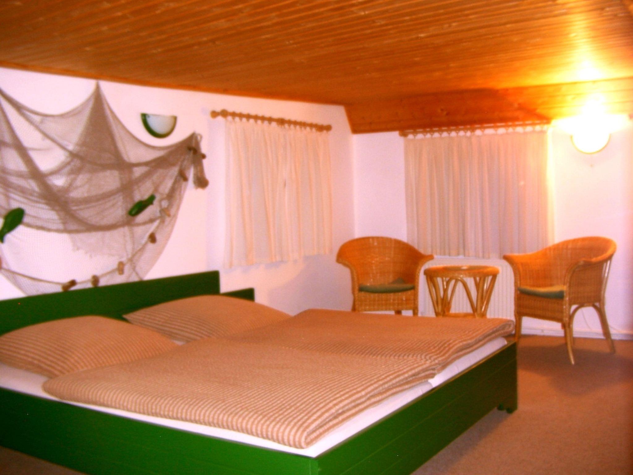 Ausgang und Blick zur Wiese. Entfernung zum nahen Strandbereich etwa 150 m. Gartentisch, Stühle, Liegestühle, Sonnenschirm. Kombinierter Wohn-/Schlafbereich. Raum- und Türhöhen entsprechen dem traditionellen Stil des Hauses und gelten daher als anerkannt. Ausstattung mit Miniküche, Kühlschrank, Kaffeemaschine, Wasserkocher, Toaster, Radio, Fernseher, Doppelbett, Wc, Dusche, Fön, Geschirrtücher, Spülmittel, Papierartikel, (Filtertüten, Küchenrolle etc.). Im Mietpreis enthalten sind Bettwäsche, Hand- und Badetücher, Heizung, Strom, Wasser sowie Endreinigung. Keine sonstigen Verbrauchskosten. Rauchen und sämtlicher Gebrauch von Feuer (z. b. Kerzen, Öllampen usw.) sind im Fischerhaus aus Gründen des Brandschutzes untersagt. Hausschuhe sind bitte erwünscht. Appartement nicht kindgerecht, Buchungen nur für Erwachsene. Kurabgabe je nach Saison. Ruhesuchende und ebenso rücksichtsvolle Gäste sind gern willkommen.