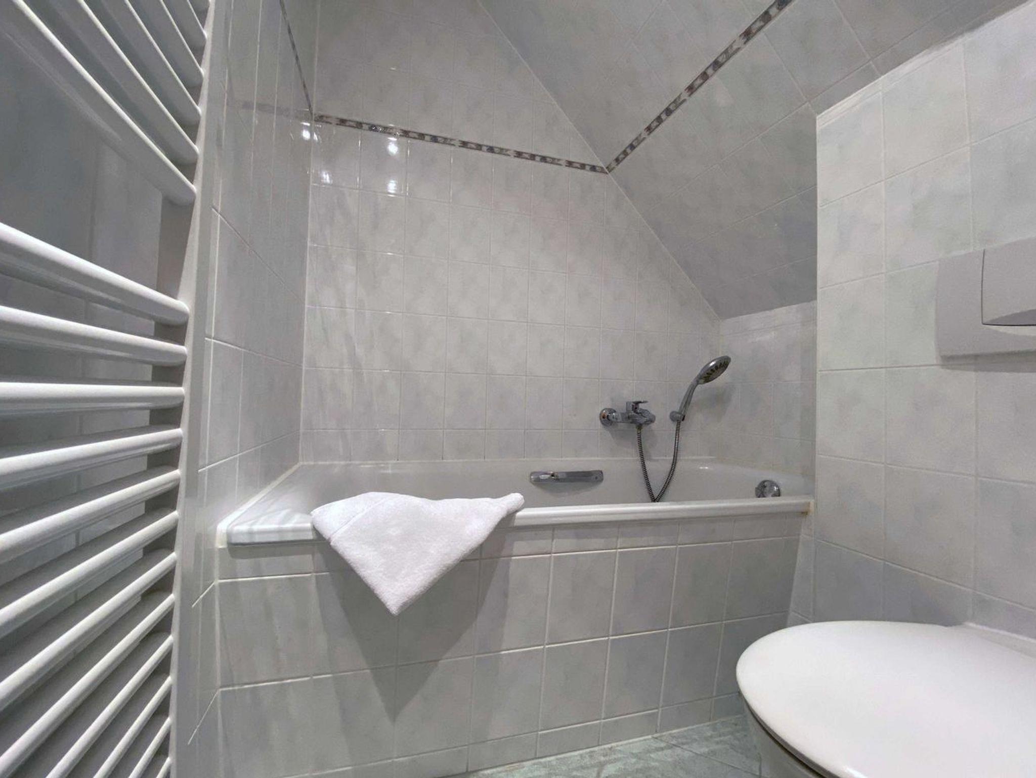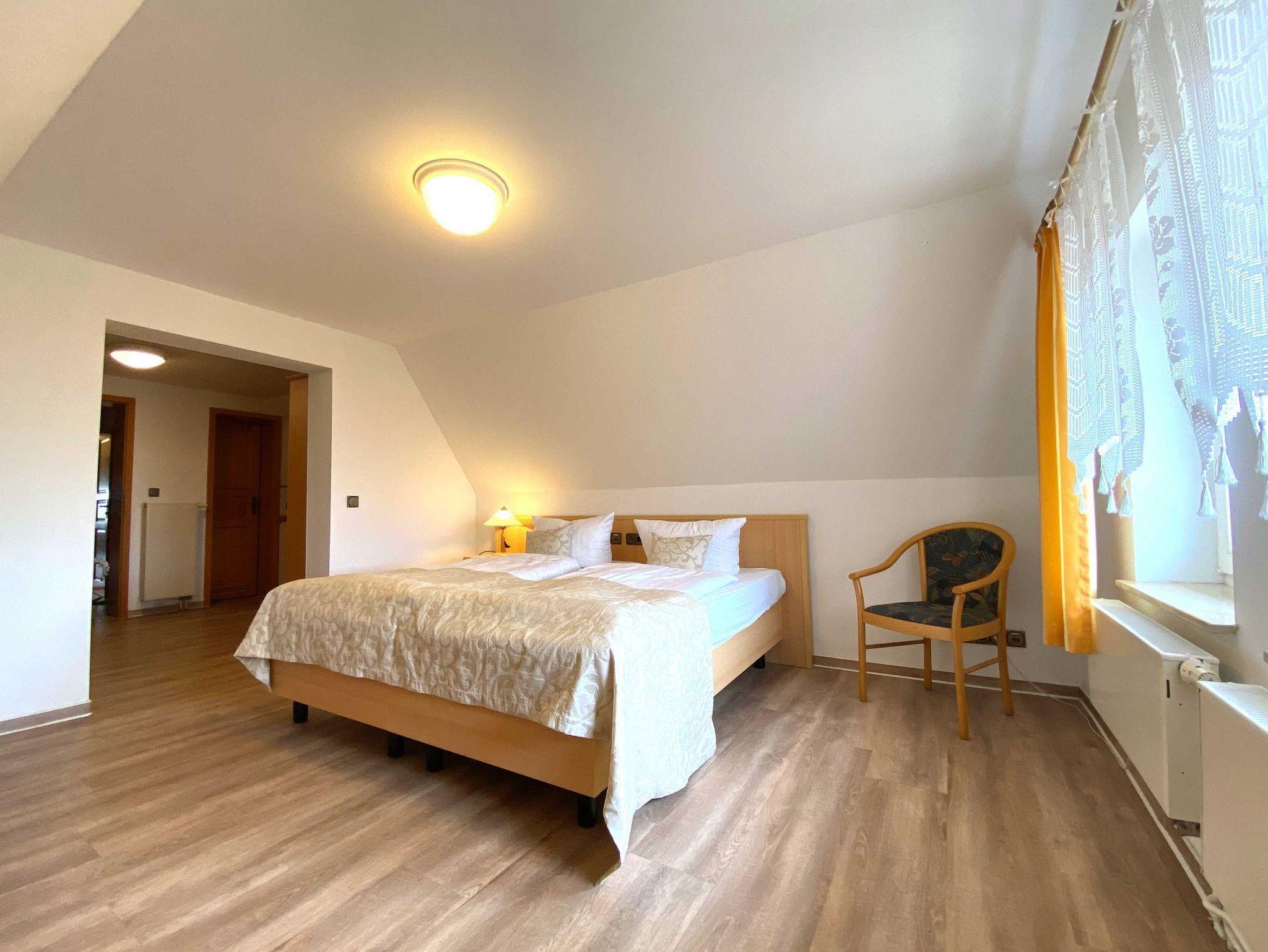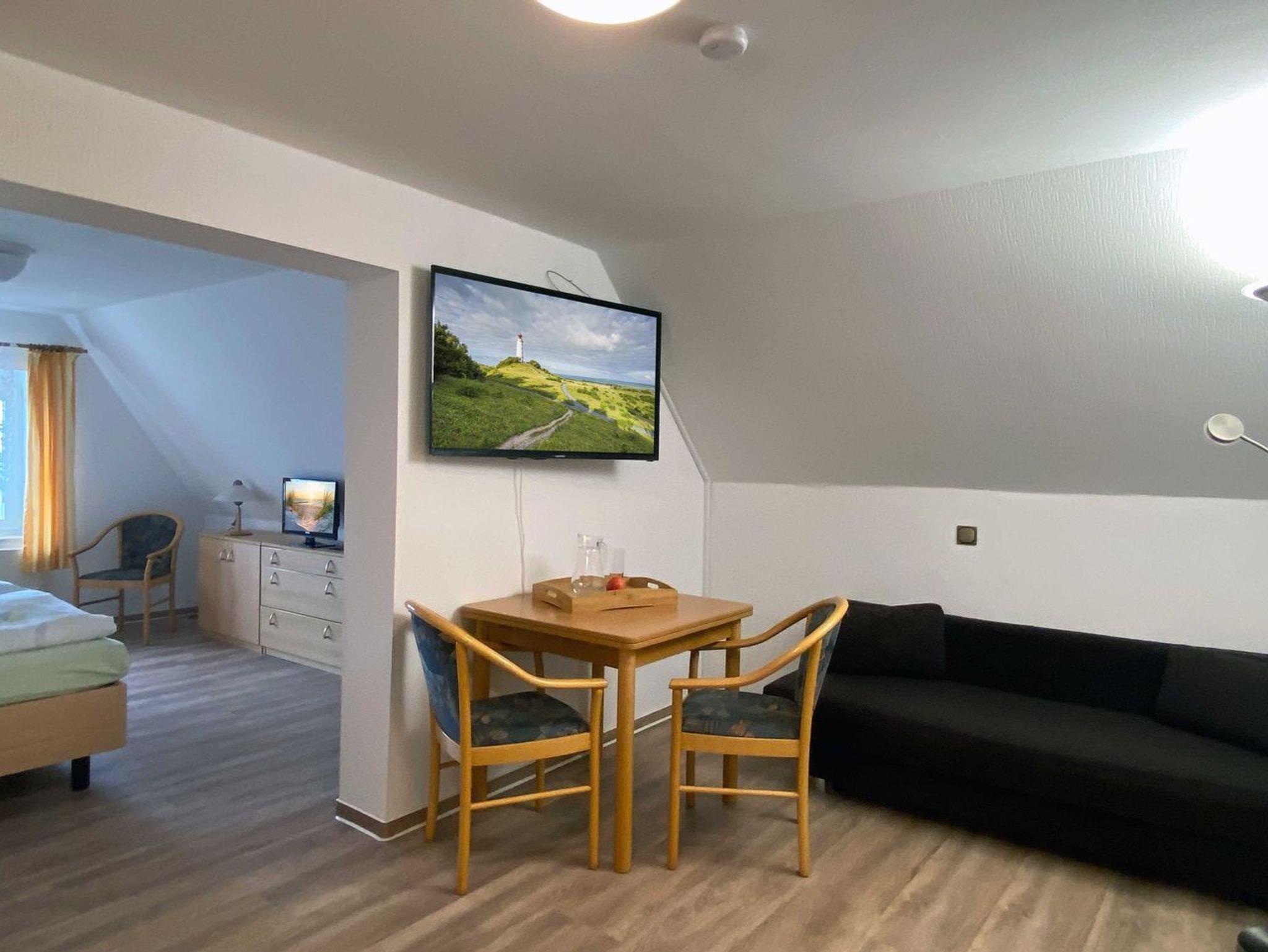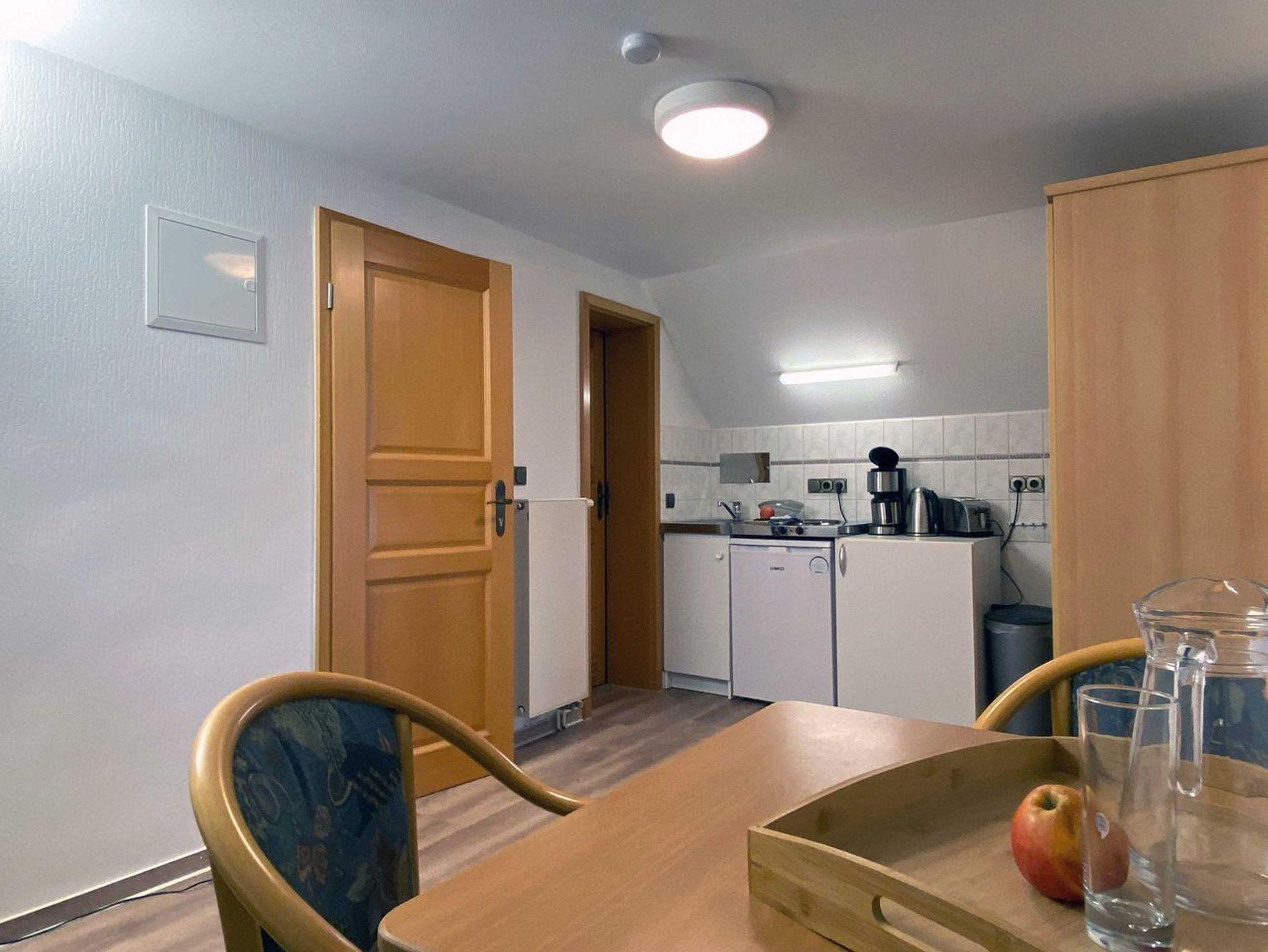 Das 2-Raum-Appartement mit einer Größe von 27 Quardratmetern befindet sich im Dachgeschoss und bietet Platz für bis zu 2 Personen.[nbsp] Das gemütliche und kleine Wohnzimmer ist mit einem bequemen Sofa (mit Ausziehfunktion), Flat TV und einem Esstisch für 2 Personen ausgestattet. Die intergierte Pantryküche ist eingerichtet mit einem Kühlschrank, 2 Herd-Platten, Wasserkocher, Toaster, Kaffeemaschine, Gläser, Besteck und Kochutensilien.[nbsp] Das helle und freundliche Schlafzimmer wurde liebevoll eingerichtet mit einem bequemen Doppelbett und Flat-TV. Relaxen Sie in der Badewanne und lassen Sie den Tag entspannt ausklingen, ein Haartrockner und WC sind ebenfalls vorhanden.