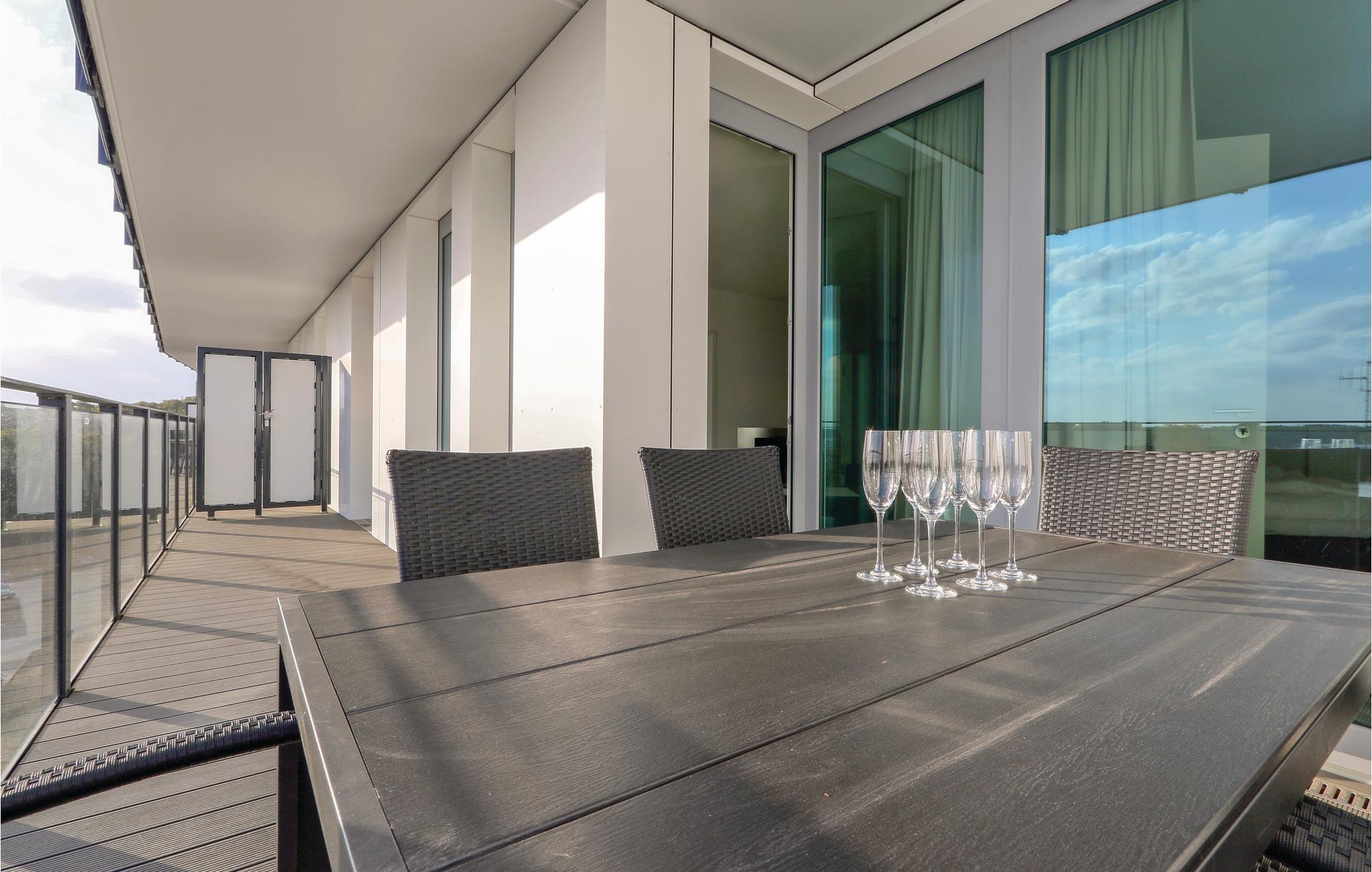 Den moderne kjøkkenkroken tilbyr nok plass til matlaging og er utstyrt med merkevareapparater av høy kvalitet. Her vil duftende elskere finne en Nespresso-maskin (vennligst ta med dine egne kapsler), samt en termosflaske og håndfilter for hjemmebrygging, i tilfelle du foretrekker den klassiske filterkaffen tross alt. På balkongen, som vender mot sør, kan du nyte den friske luften fra Østersjøen og lyden av bølgene eller spise sammen med familien. Her kan du nyte utsikten over innseilingen til havnen og Priwall-stranden. Mot et lite depositum kan du låne en kikkert i resepsjonen for å observere liv og røre i omgivelsene og naturen.