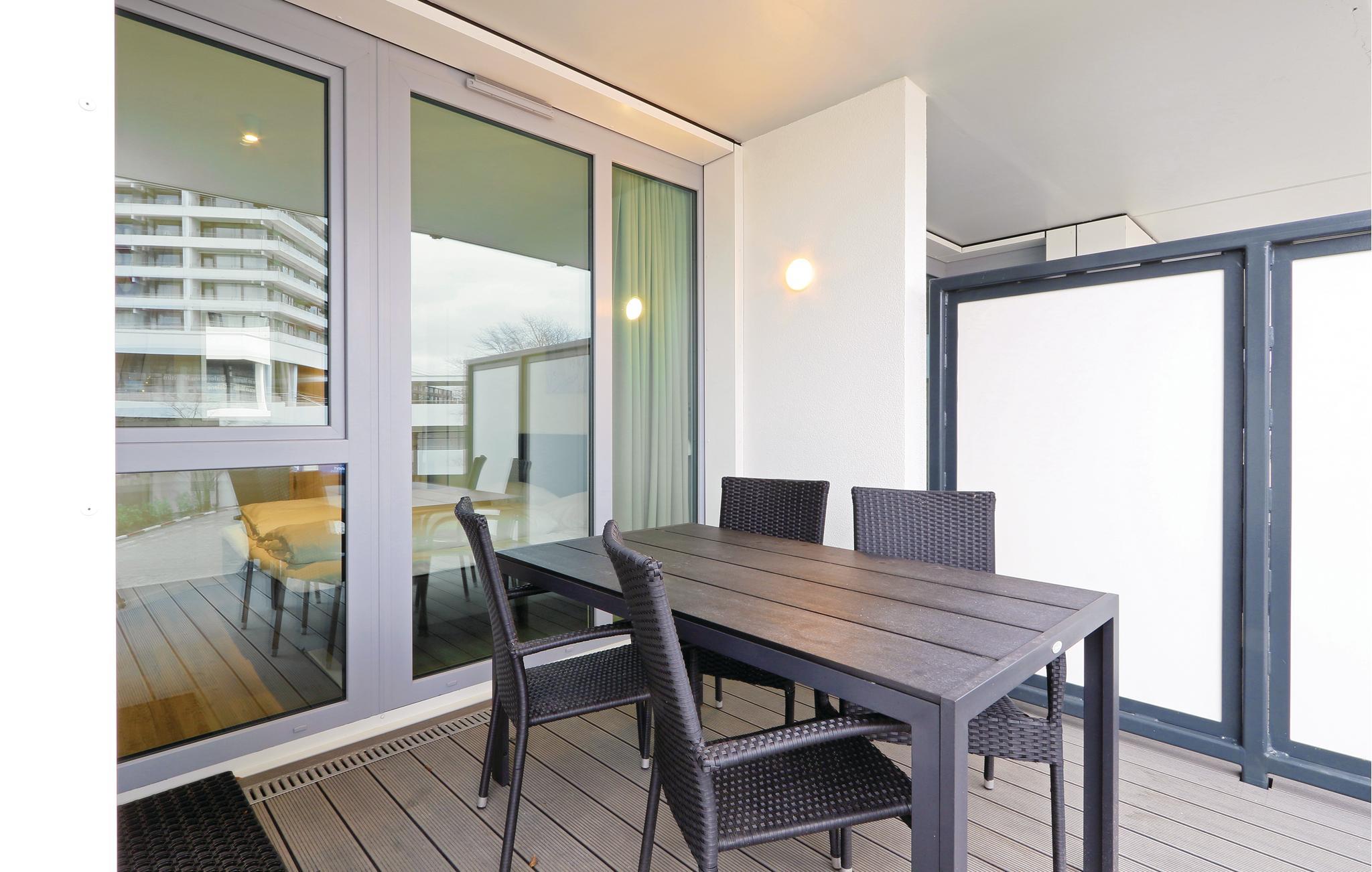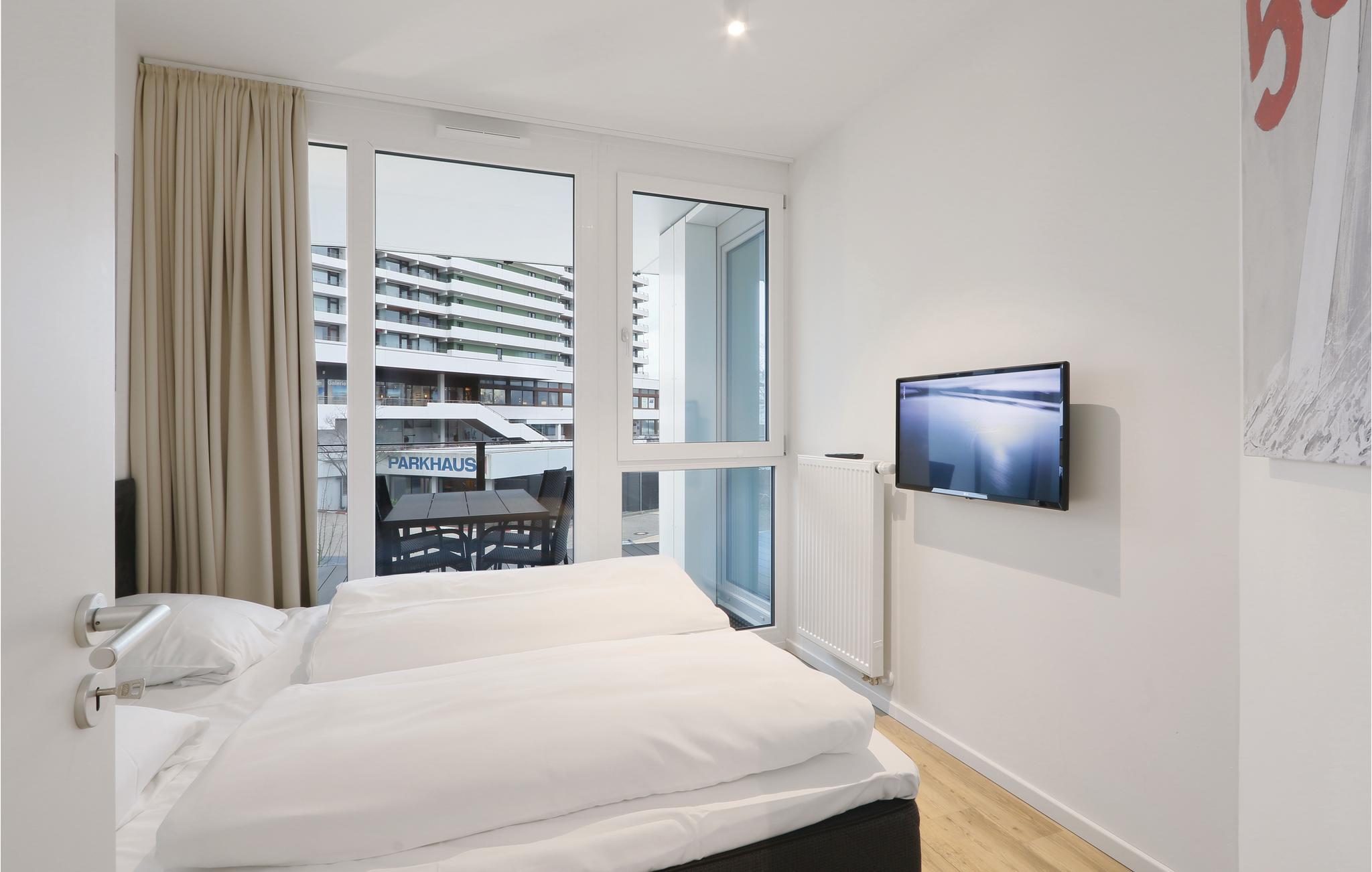 Leiligheten din ligger i første etasje i komplekset og har et separat soverom med en komfortabel dobbeltseng. I stuen kan du gjøre deg komfortabel foran det koselige lyset fra bioetanolpeisen. Det moderne underholdningssystemet med Blu-Ray-spiller, musikkanlegg med MP3-tilkobling samt 2 flatskjerm-TV-er gir tilstrekkelig underholdning. I stuen finner du også sovesofaen, som tilbyr to ekstra soveplasser. Alle rommene er innredet i skandinavisk stil og er lyse og oversvømmet med lys på grunn av vinduene fra gulv til tak.