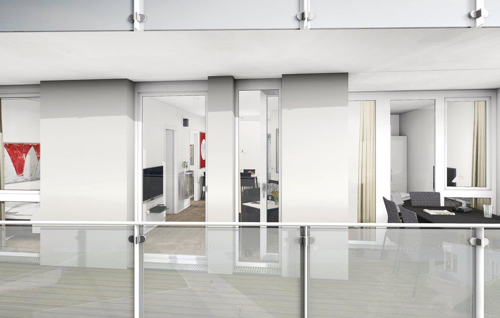 På balkongen, som vender mot sør, kan du nyte den friske luften fra Østersjøen og solen. Herfra har du utsikt over Priwall og havneinngangen med skipene som passerer. Her er hagemøbler tilgjengelig for felles måltider med familien. Mot et lite depositum kan du låne en kikkert i resepsjonen for å observere liv og røre i omgivelsene og naturen.