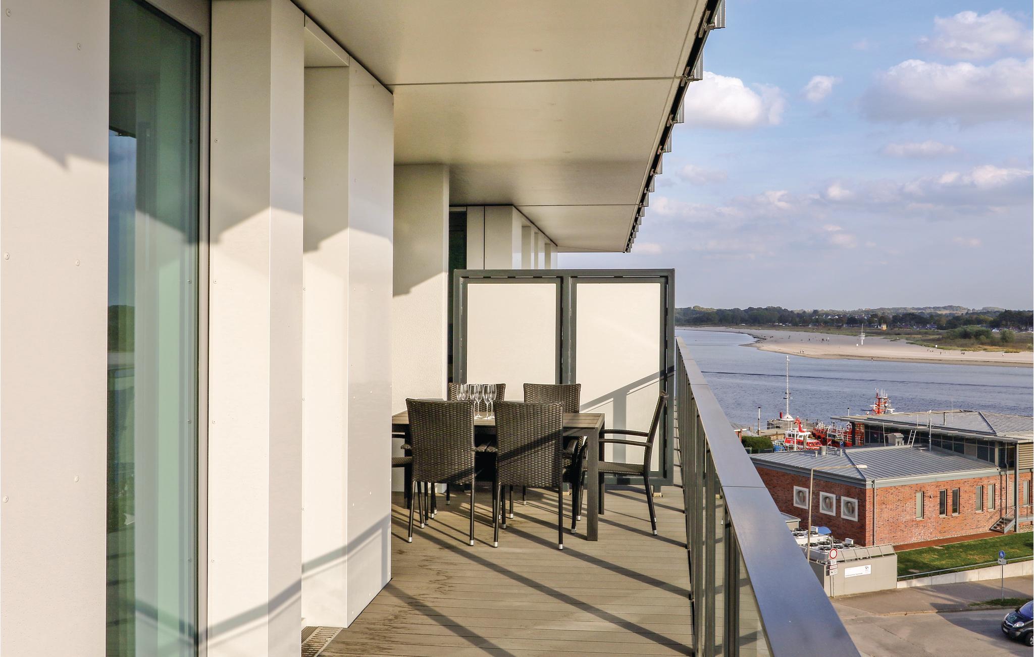 På balkongen, som vender mot sør, kan du nyte den friske luften fra Østersjøen og lyden av bølgene eller spise måltider sammen med familien. Her kan du nyte den vakre utsikten over Trave-munningen og de passerende skipene samt Priwall helt til den fine sandstranden. Mot et lite depositum kan du låne en kikkert i resepsjonen for å observere liv og røre i omgivelsene og naturen.