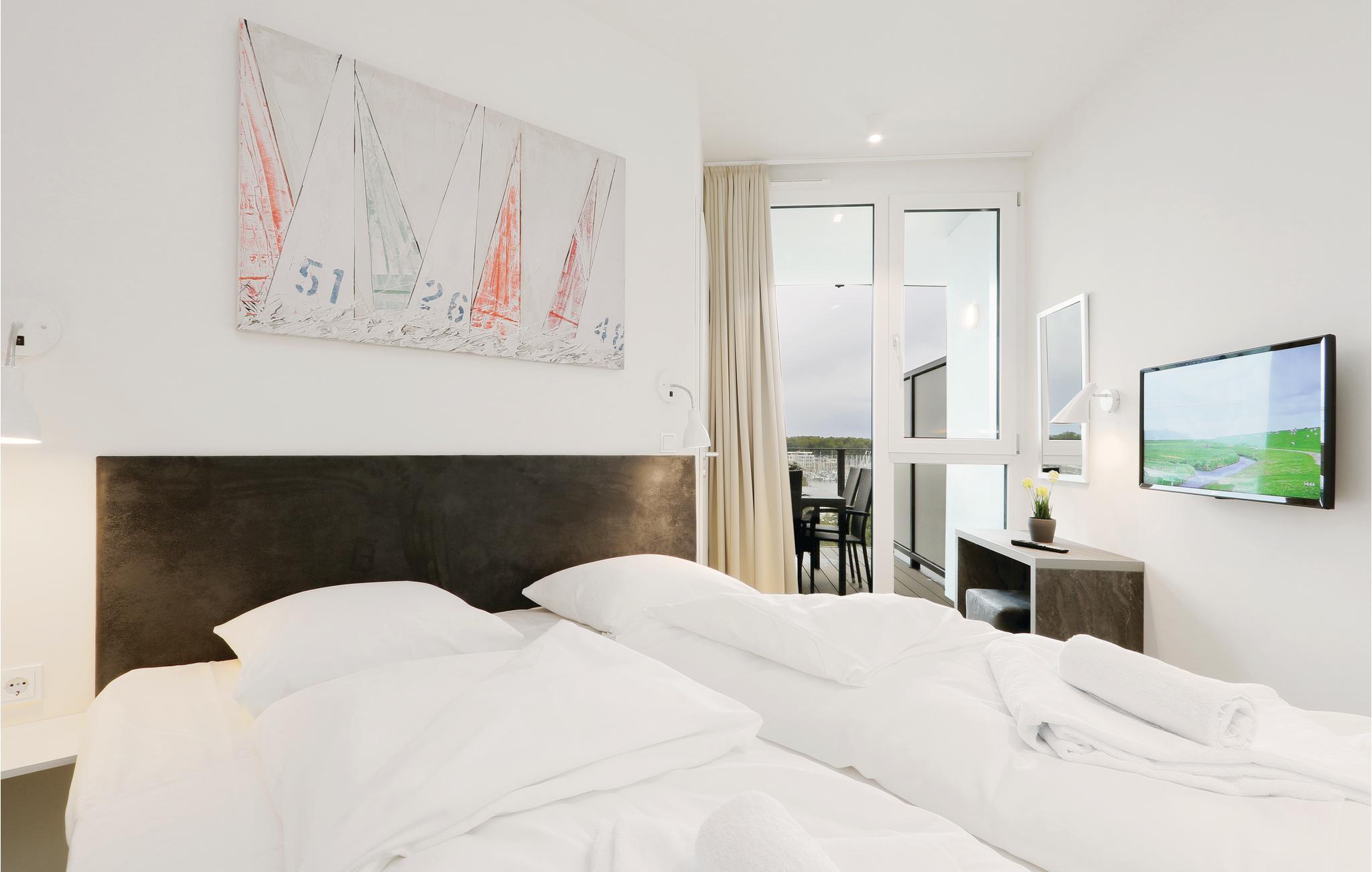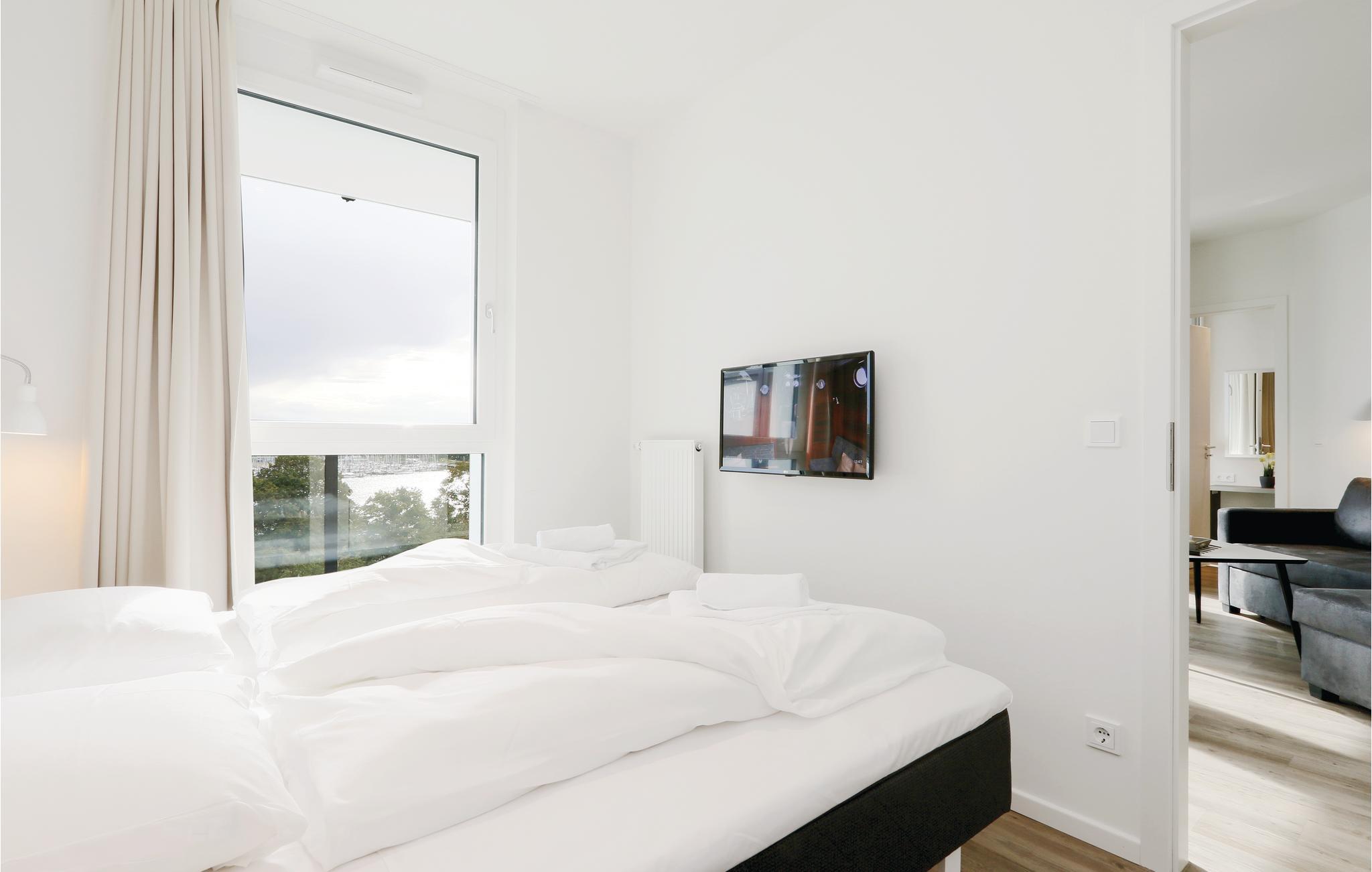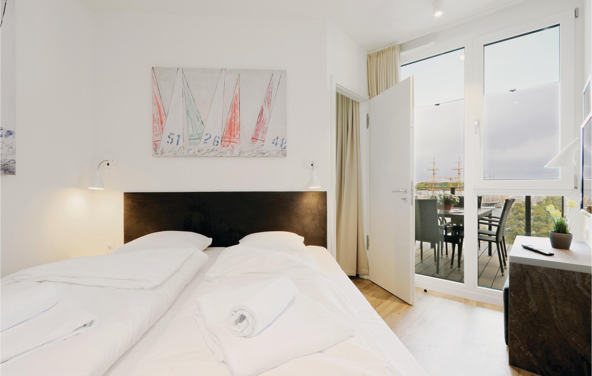 Ferieleiligheten din ligger i 5. etasje i komplekset, og derfor har du en unik utsikt. Herfra kan du se ut over Priwall, sandstranden og havneutkjørselen med skipene som passerer.