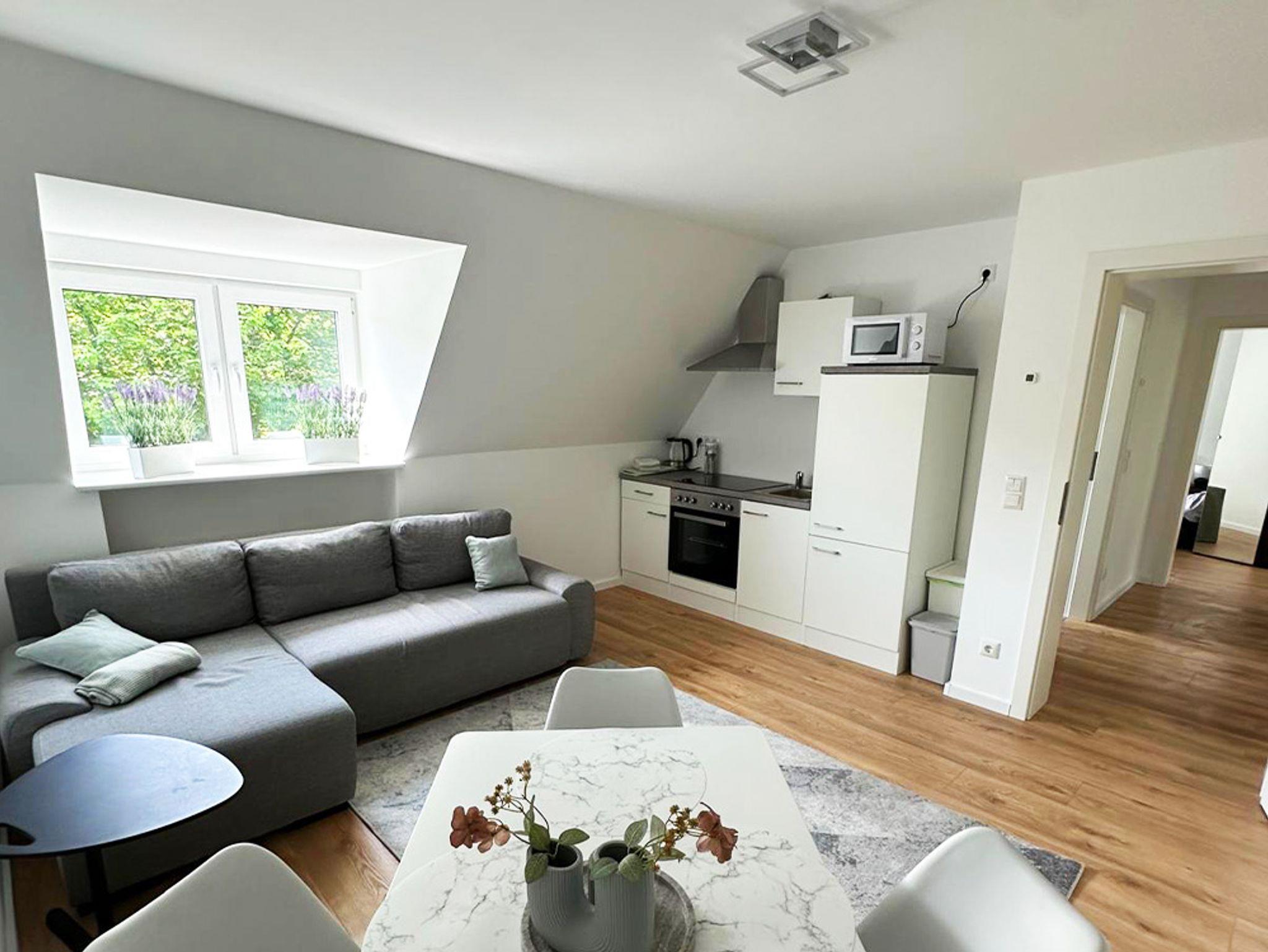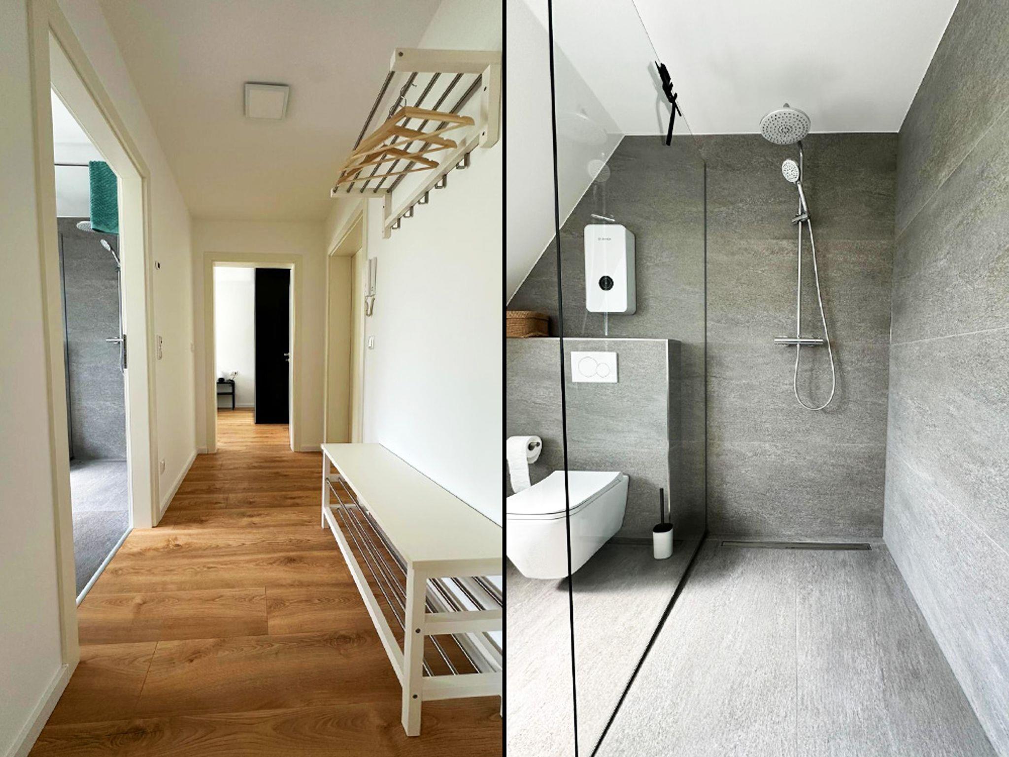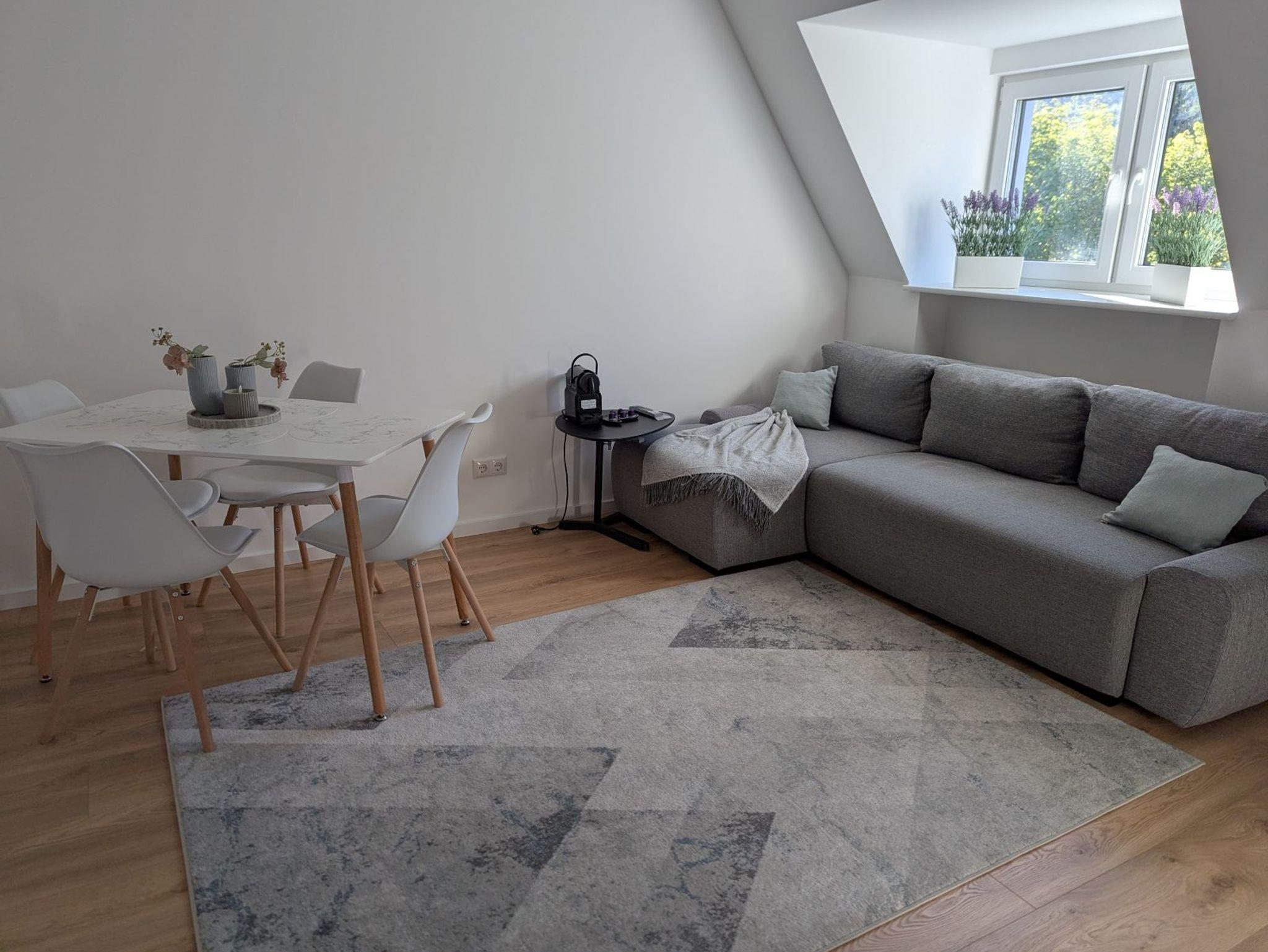 Willkommen in Ihrer frisch renovierten 2-Zimmer-Wohnung in Hilchenbach-Allenbach – ruhig gelegen, lichtdurchflutet und mit direktem Zugang zur Natur. Auf über 50 m² erwarten Sie ein helles Schlafzimmer mit komfortablem Doppelbett (160×200 cm) und Arbeitsplatz, ein gemütliches Wohnzimmer mit ausziehbarem Schlafsofa und großem Smart-TV sowie eine moderne, voll ausgestattete Küche mit Backofen, Mikrowelle, Wasserkocher und Kaffeemaschine. Das stilvolle Badezimmer verfügt über eine Dusche, Waschmaschine und hochwertige Sanitärausstattung.