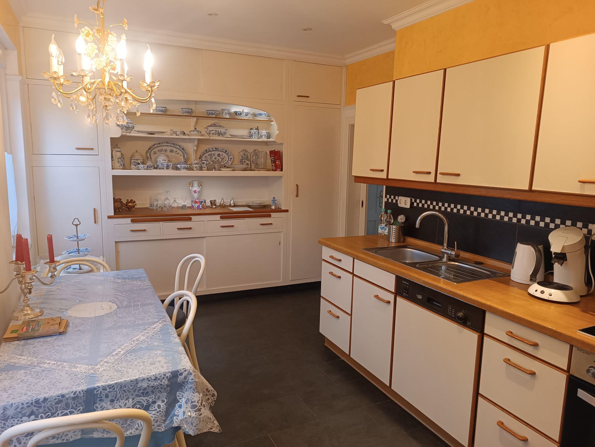 Im kleinen Zimmer, ca. 12,5 m², befinden sich eine Sitzgelegenheit, TV und ein Einzelbett. Die Räume sind mit Stilmöbeln ausgestattet. Küche und Badezimmer sind gemeinschaftlich zu nutzen. Die Küche ist vollständig ausgestattet; Backofen, Kühl-Gefrierschrank, Wasserkocher und Toaster gehören ebenfalls dazu. Das Bad mit Dusche und WC ist zusätzlich mit einer Waschmaschine und einem Trockner ausgestattet. Wäscheständer und Waschmittel stehen ebenfalls zur Verfügung. Anmietung der gesamten Wohnung auf Anfrage!