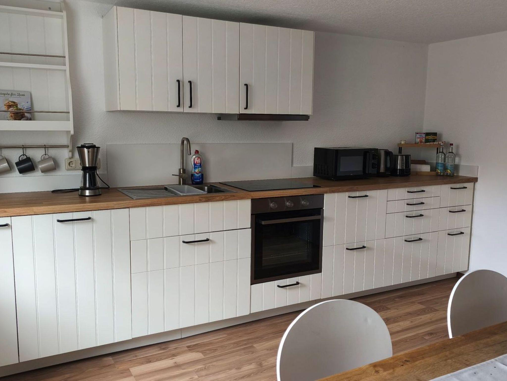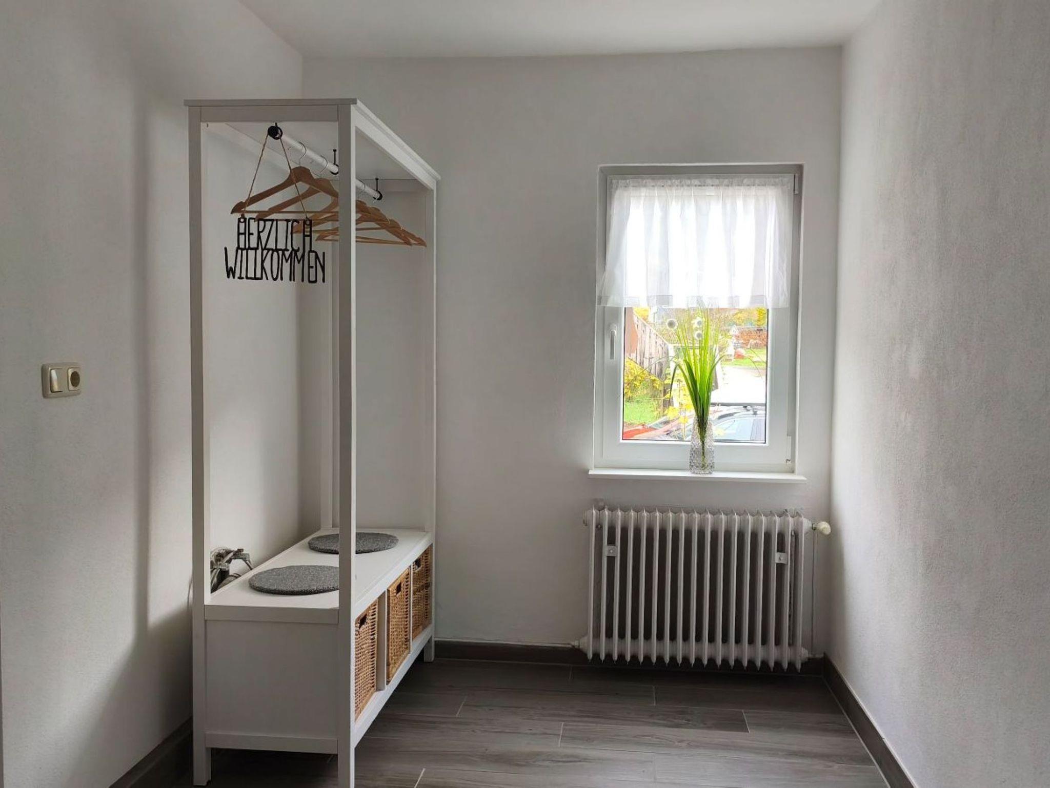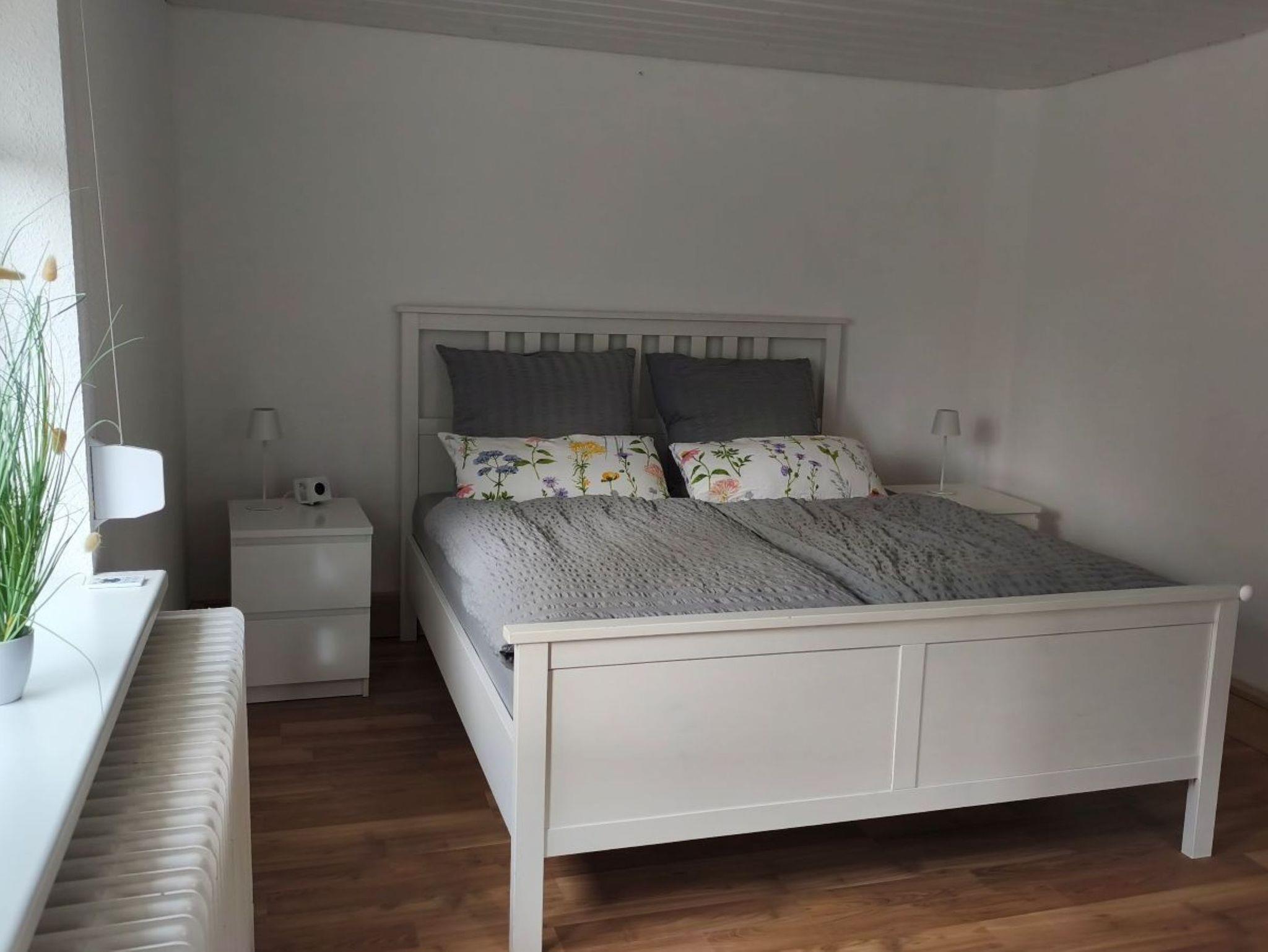 Die Ferienwohnung 108qm liegt im zweiten Stock eines Fachwerkhauses und ist über eine Treppe zu erreichen. Über einen großzügigen Eingangsbereich mit einer Garderobe gelangt man in den Flur, ausgestattet mit Infomaterial sowie anderen nützlichen und unterhaltsamen Ausstattungsgegenständen. Die Wohnung besitzt ein Schlafzimmer mit 1,60m breitem Doppelbett und einem großzügigen Kleiderschrank sowie ein kleines Einzelzimmer, in dem sowohl ein Schreibtisch als auch Stauraum vorhanden sind. Das Wohnzimmer mit weitem Blick über die Landschaft, einem Smart-TV und einer gemütlichen Sitzgelegenheit lädt zu kuscheligen Stunden ein. Die vollausgestattete Wohnküche verfügt zusätzlich über eine Spülmaschine und ein Gefrierfach. Das in zwei Räume geteilte Badezimmer besitzt sowohl Badewanne, eine feste Dusche als auch ein Waschbecken. Im zweiten Bad befinden sich ein WC und ein weiteres Waschbecken. Für Raucher befindet sich eine überdachte Sitzmöglichkeit vor der Haustür. Auch für das eigene Pferd stehen Hauseigene Pferdeboxen nach Absprache zur Verfügung. So steht einem gemeinsamen Abenteuer mit seinen Lieblingen nichts im Wege.
