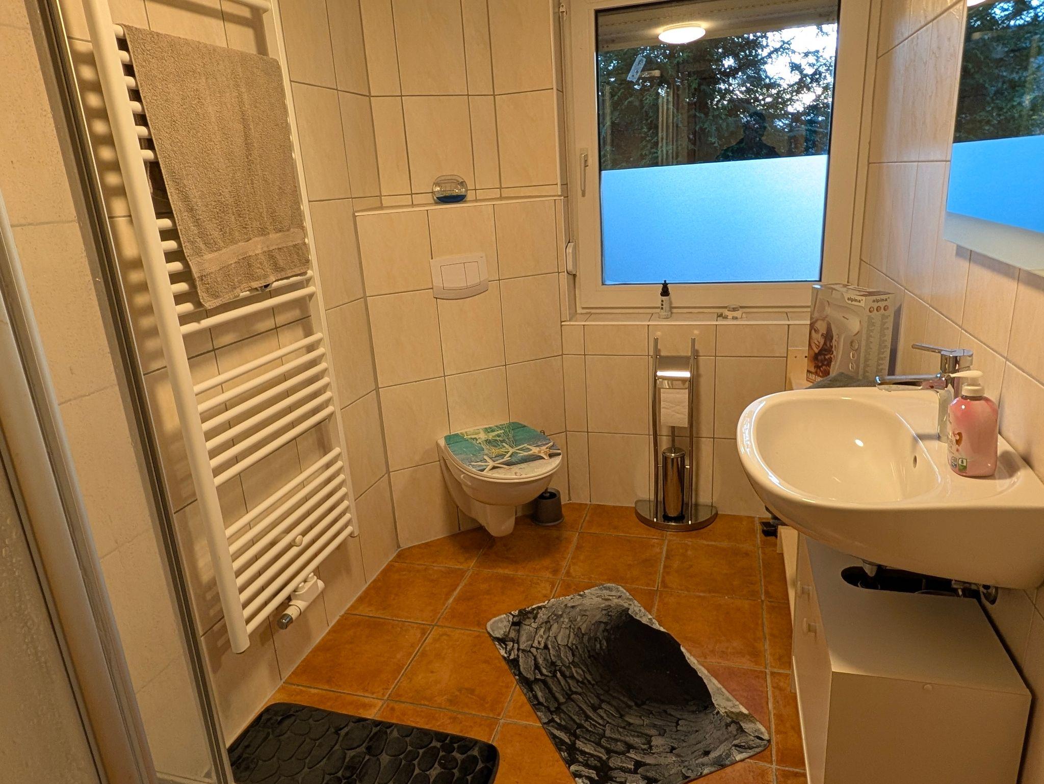 Die ca. 70 m² große Ferienwohnung liegt in herrlicher Waldrandlage von Hilchenbach mit direktem Zugang zu Fahrrad und Wanderwegen (z.B.Rothaarsteig). Die Küche verfügt über eine Sitzecke und einer gut ausgestatteten Küchenzeile. Ein Kühlschrank mit kleinem Gefrierfach ist vorhanden. Das helle geräumige Wohnzimmer ist mit einem bequemen Sofa und einem großen Smart-TV ausgestattet. Gute Matratzen im Doppelbett(1.80m x2.00m) sorgen im Schlafzimmer für ein entspanntes Schlaferlebnis. Im Badezimmer befindet sich eine Dusche, WC und Waschgelegenheit. Eine große und teilweise überdachte, im Sommer möblierte Terrasse lädt zu einem gemütlichen Grillabend ein.