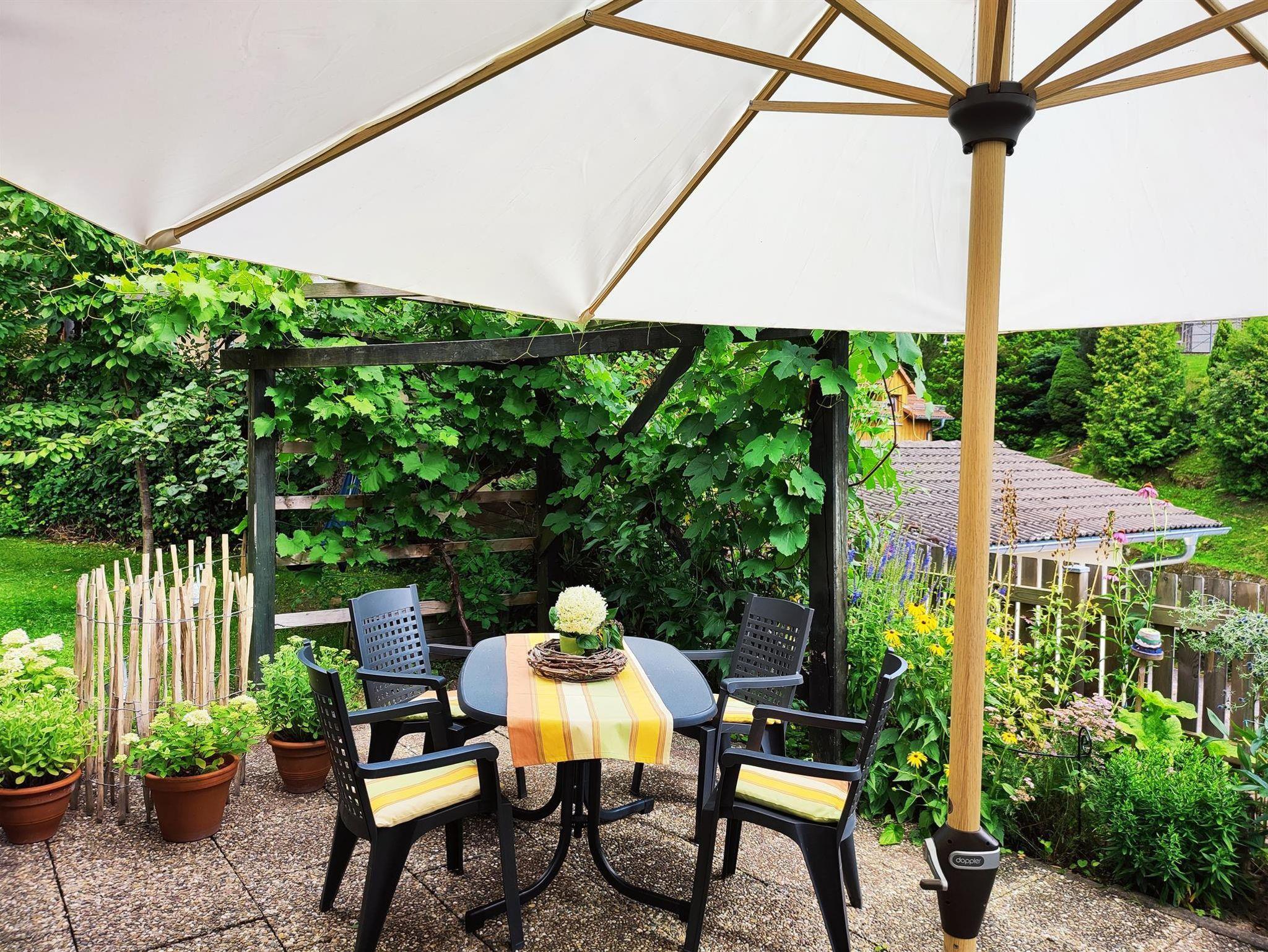 Unseren Gästen steht im Garten eine große Sonnenterrasse zur Verfügung.