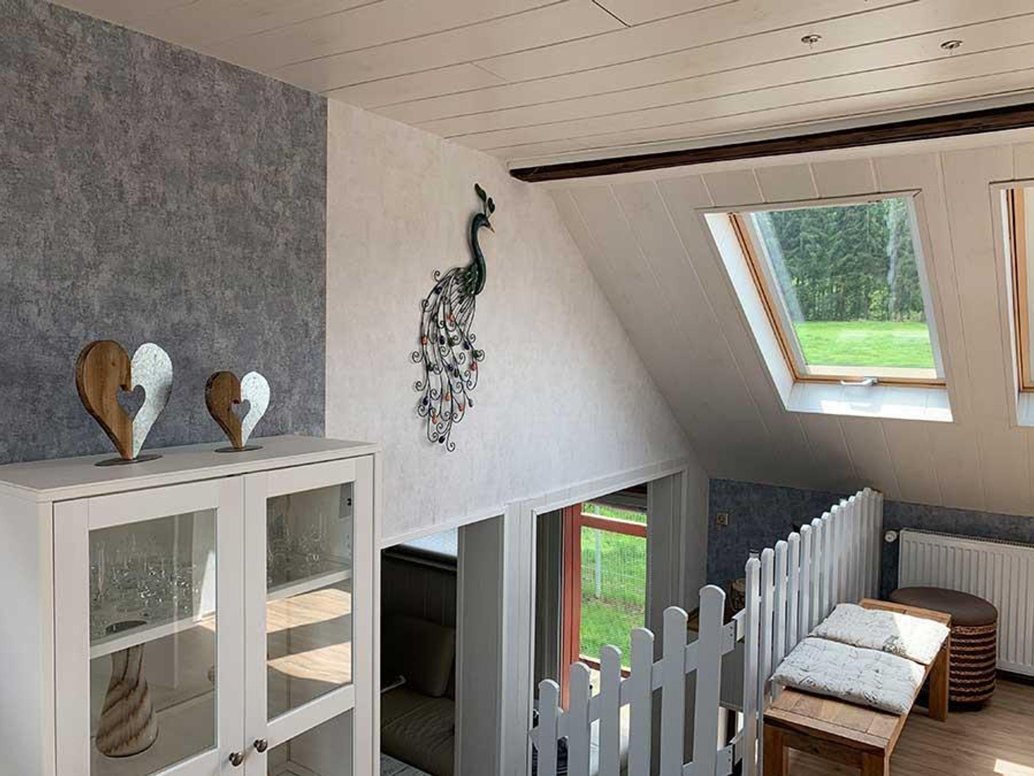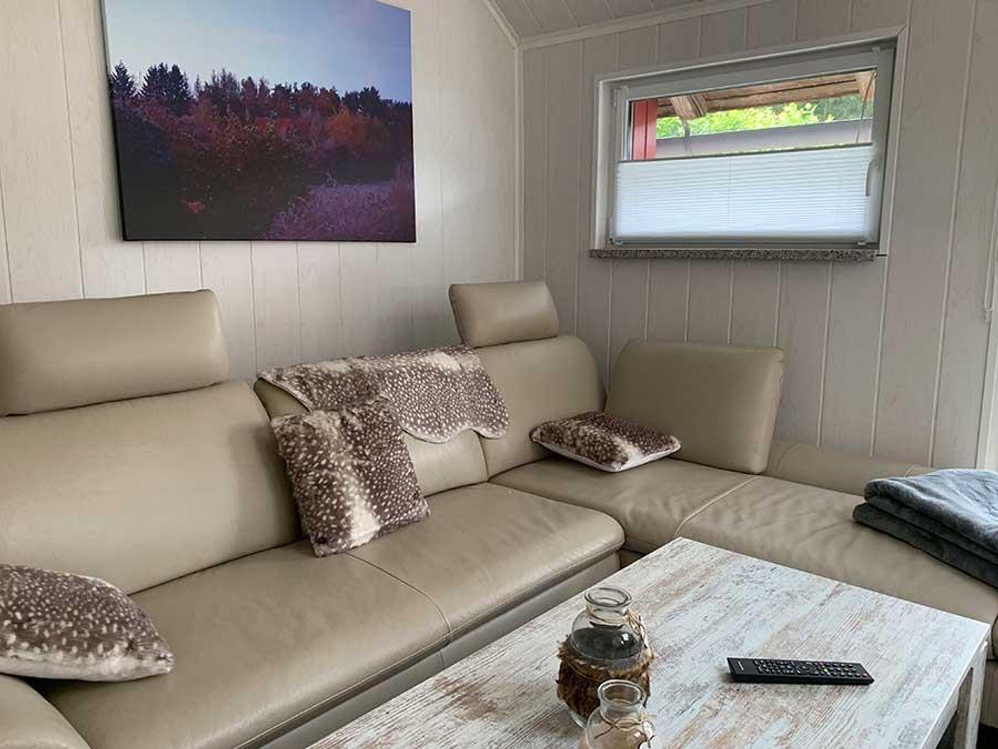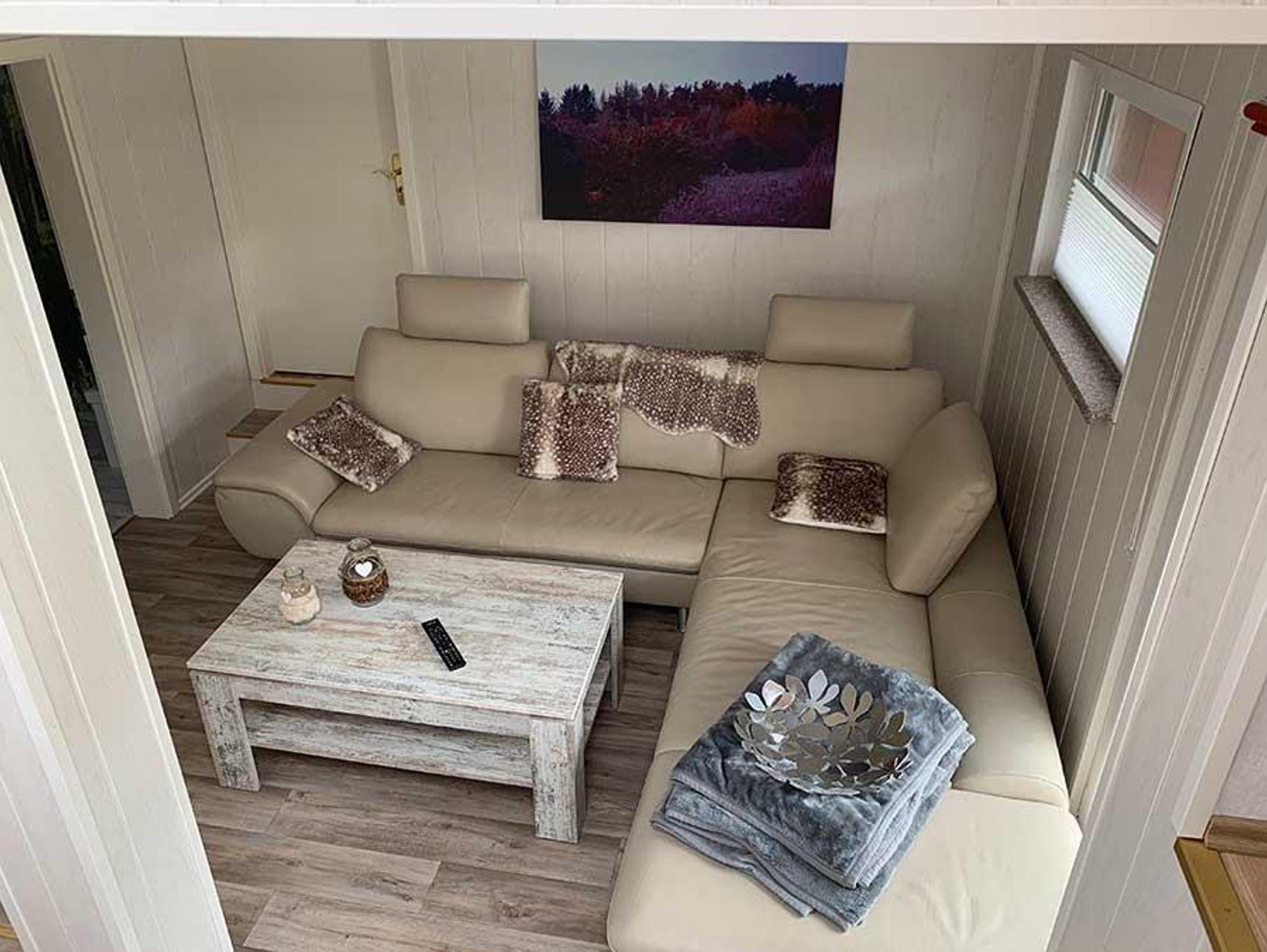 Für die fünfte Person steht ein Schlafsofa auf der Galerie zur Verfügung, sowie ein Kinderbett. Auf der Holzterrasse finden sie die Möglichkeit zum Sitzen und Liegen. Den angrenzenden eingezäunten Garten können Sie gerne für Ihre Hunde nutzen.