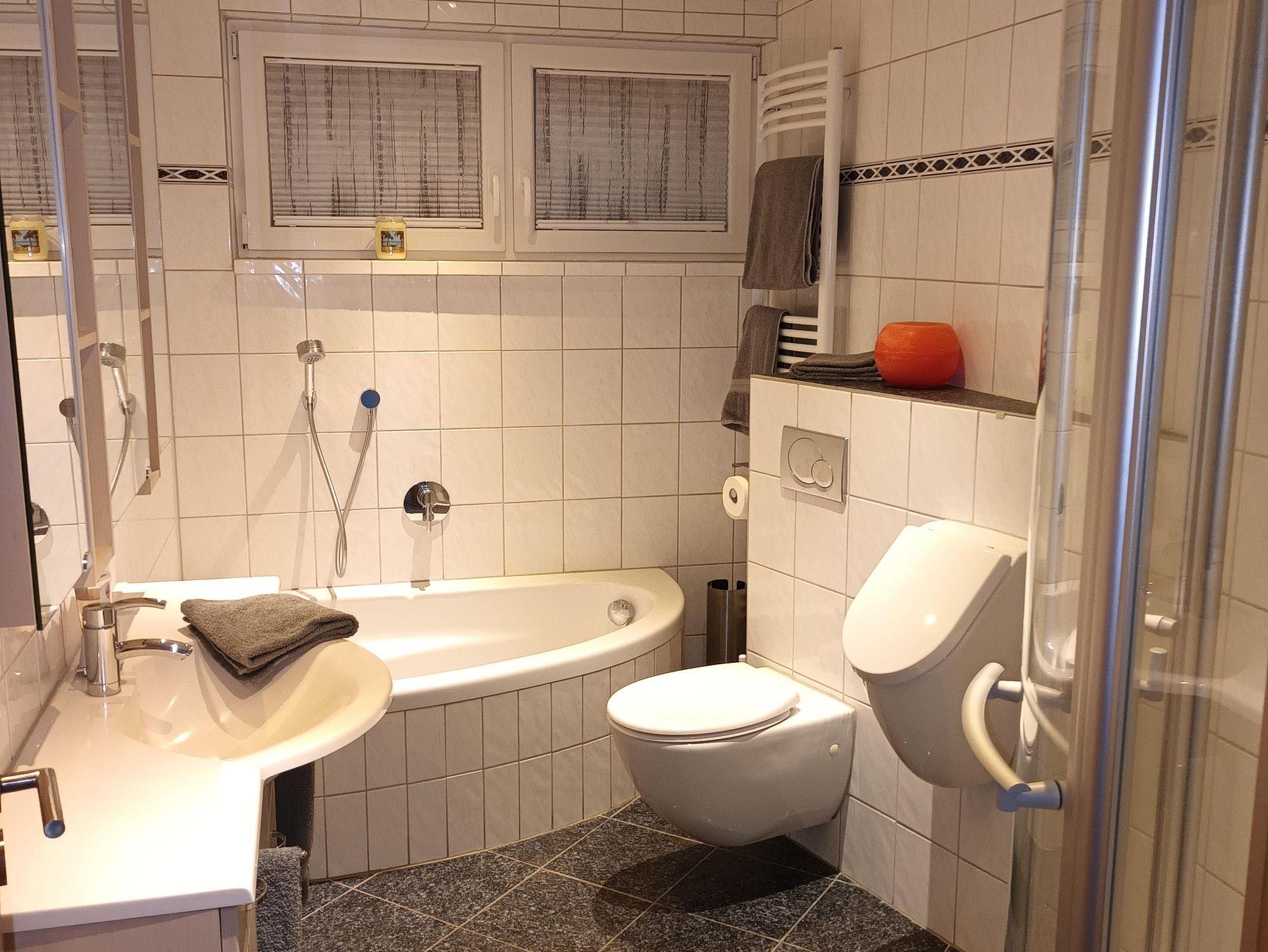 Im Bad können sie sich in der großen, gemütlichen Badewanne bei Kerzenschein nach Ihrem Ausflug erholen. Zusätzlich steht ihnen natürlich auch eine Dusche zur Verfügung.