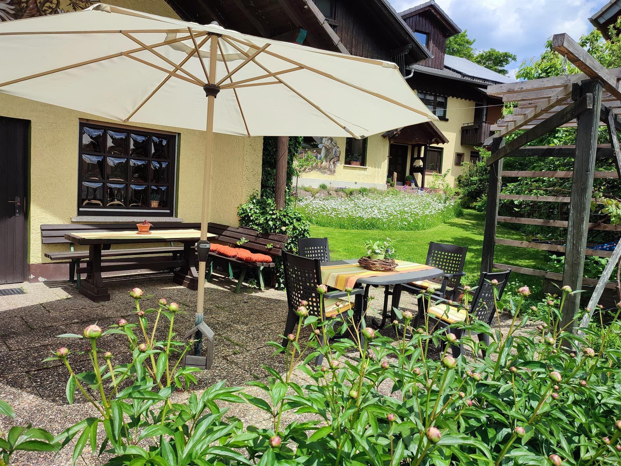 Unseren Gästen steht im Garten eine große Sonnenterrasse zur Verfügung.