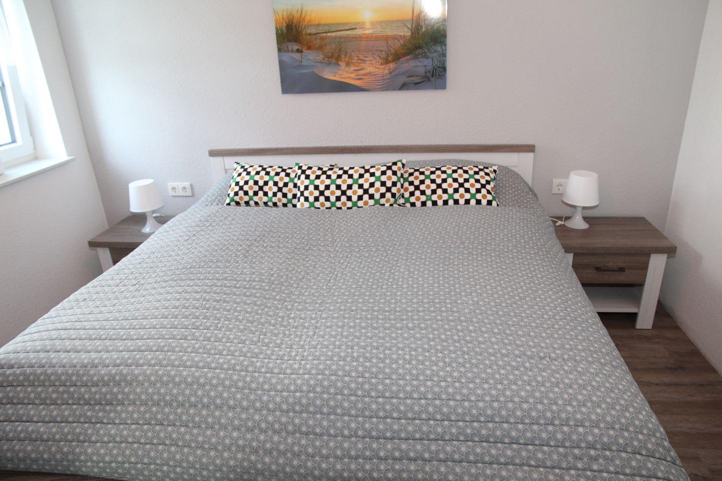 Im Obergeschoss finden Sie zwei weitere Schlafzimmer: Ein Schlafzimmer bietet ein weiteres Doppelbett mit Sessel, Kleiderschrank und Flachbildfernseher, in dem anderen Zimmer finden Sie zwei Einzelbetten und eine Kommode. Auch im Obergeschoss befindet sich noch ein Badezimmer mit ebenerdiger Dusche, Waschmaschine und Trockner. Aus den Dachfenstern im Obergeschoss hat man einen schönen Blick auf den Deich!