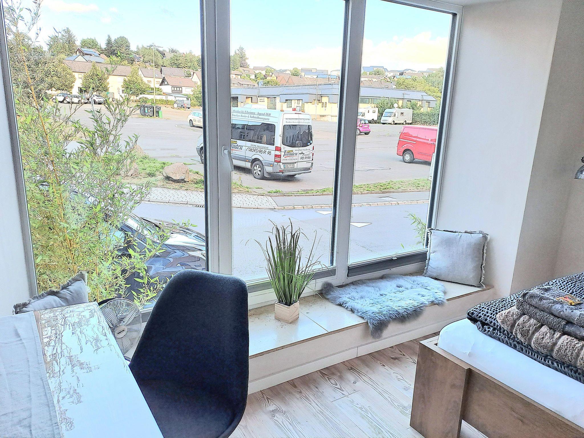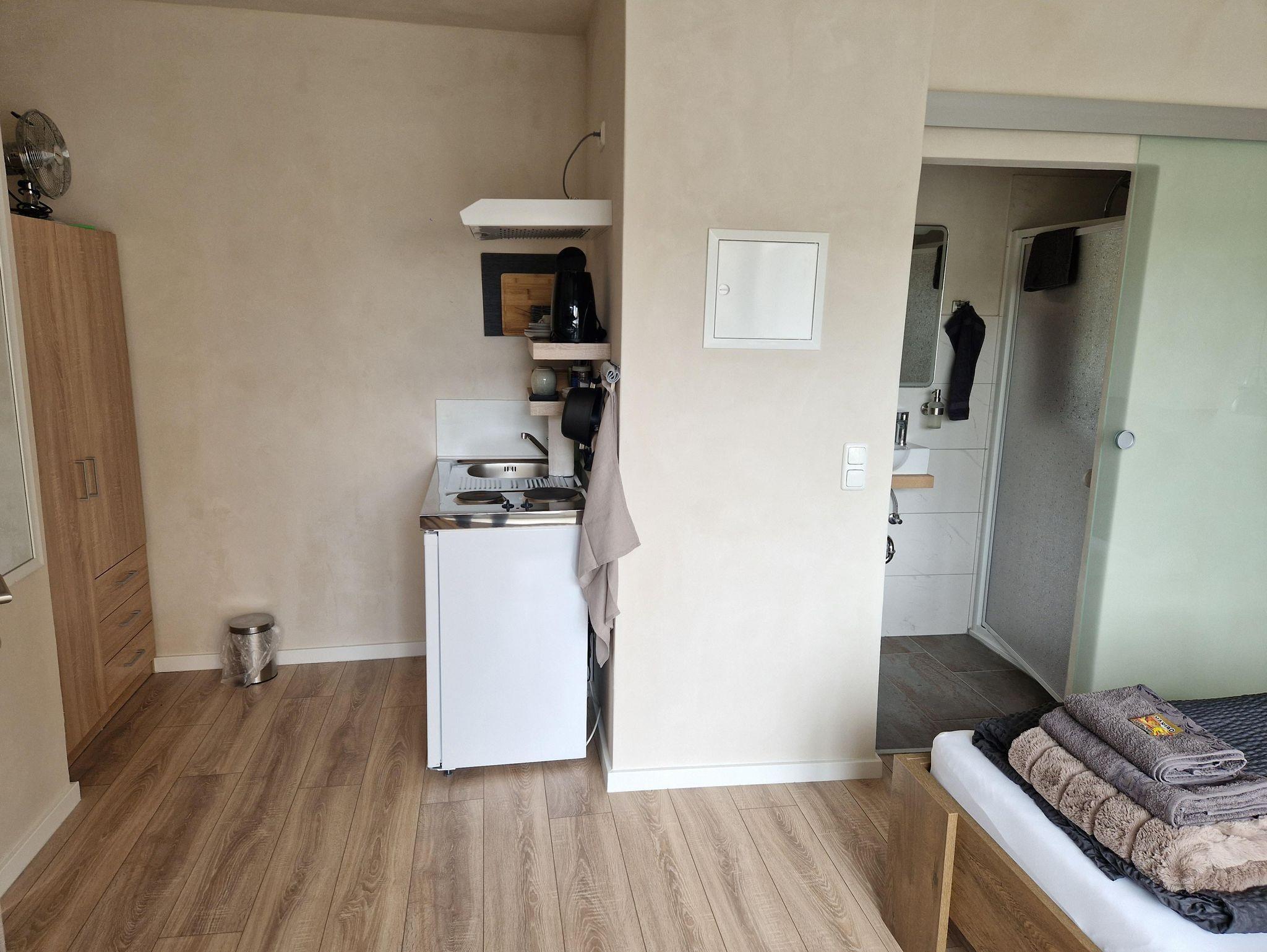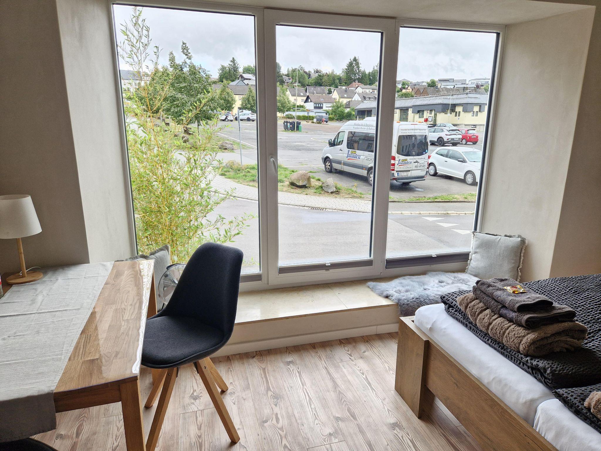 Zwei traumhaft schöne Appartments, zum Viehmarkt gelegen, laden Sie ein, Urlaub im reizvollen, charmanten Krimistädtchen Hillesheim zu machen. Auf ca 14m² Wohnfläche (über eine Treppe zu erreichen) finden Sie alles, was Sie für einen Urlaub oder Kurztrip benötigen. Beide Appartments sind ausgestattet mit einem Doppelbett, TV, WLAN, einer kleinen Küchenkombination mit 2 Herdplatten, Spüle, Wasserkocher, Kühlschrank sowie einer Mikrowelle. Am Tisch können Sie bequem Ihr selbst zubereitetes Frühstück einnehmen. Außerdem lassen sich auf dem geräumigen Tisch Brettspiele spielen oder auch Bürotätigkeiten erledigen- daher sind die Appartements auch hervorragend für Geschäftsreisende geeignet. Die Badezeile ist zweckmäßig mit einer Dusche, Waschbecken, WC und einem Fön + Duschbad bestückt. Vor dem Haus befinden sich auch kleine, in Bambus eingebettete Sitzkombinationen, aus welchen Sie, mit einer Tasse Kaffee oder einem Glas Wein, das Treiben auf der Straße beobachten können. Für die Zeit des Aufenthaltes stellen wir Ihnen 1 Badehandtuch, 1 Handtuch sowie 1 Gästehandtuch zur Verfügung. Ebenso stehen 1 Flasche Wasser p.Person, eine kleine Auswahl an unterschiedlichsten Teesorten sowie das erste Pulver für den Willkommenskaffee bei Ankunft, für Sie bereit.