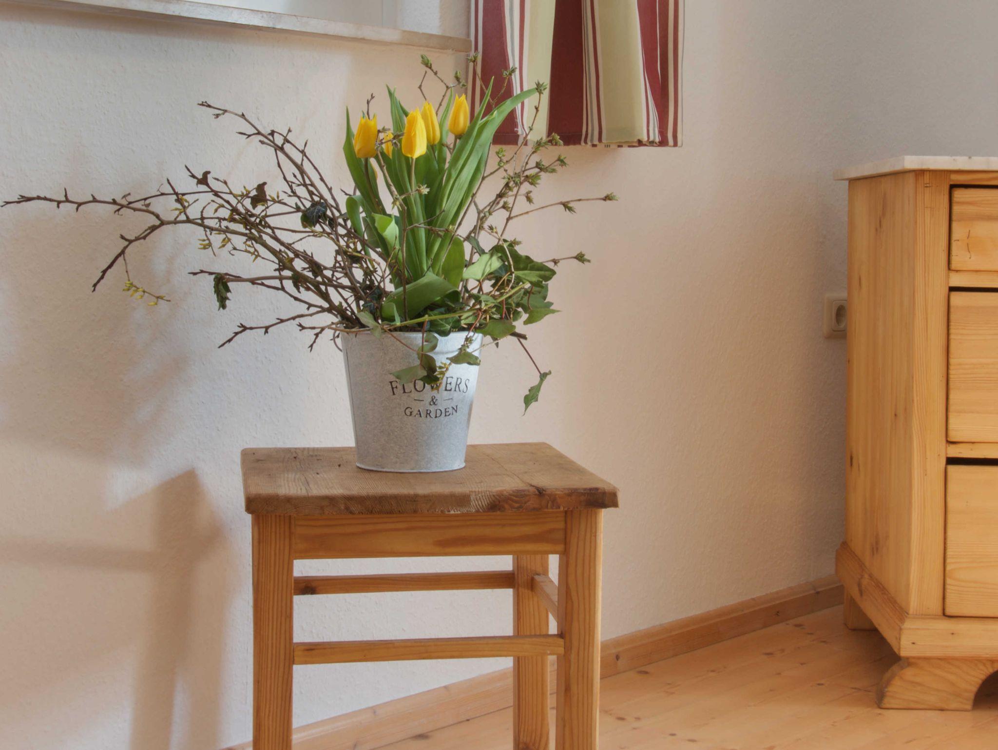 Auf 80qm bietet Ihnen unsere gemütliche Ferienwohnung eine geräumige Wohnküche, ein Schlafzimmer für 2 Personen, ein Wohn-Schlafzimmer für 2 weitere Personen, Badezimmer, separates WC und eine weitere Sitzgelegenheit im Flur.