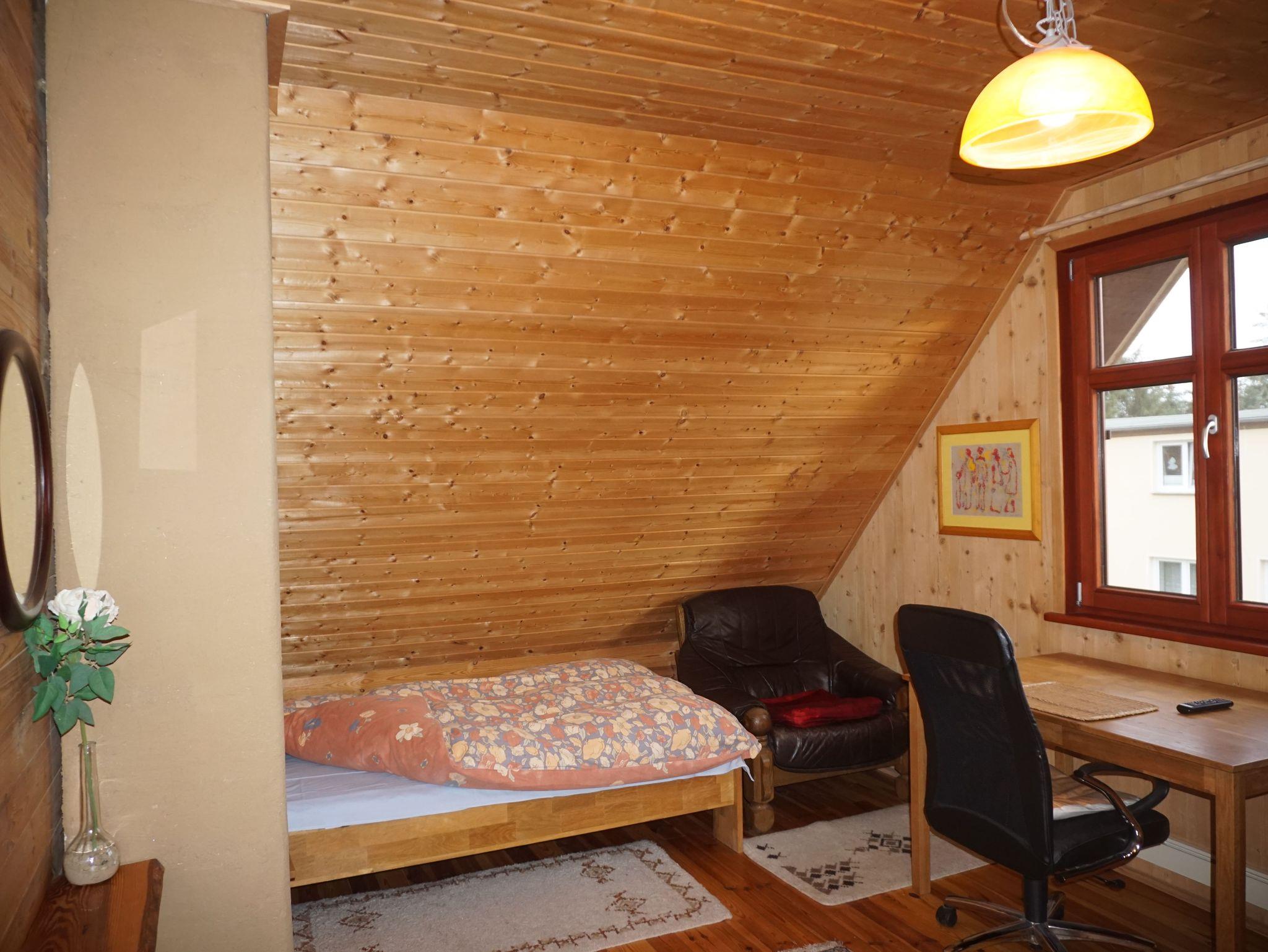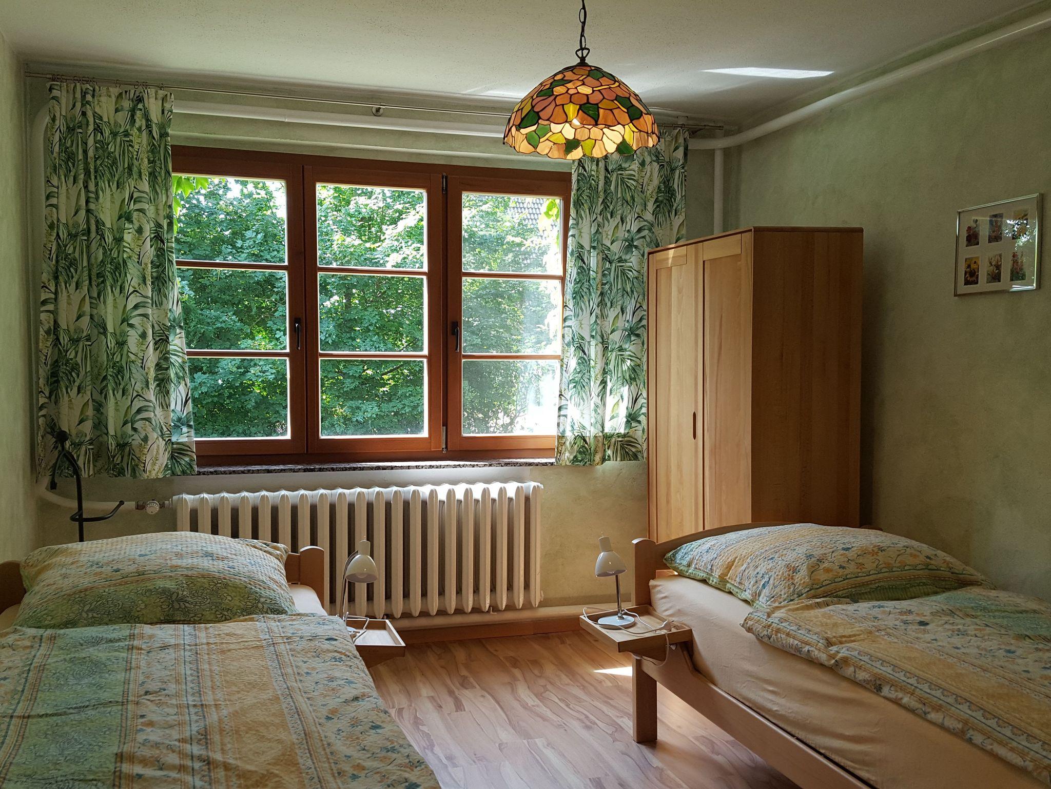 Für flexible Schlafmöglichkeiten sorgen zwei Einzelbetten, die nebeneinander oder getrennt stehen können. Zusätzlich bietet ein stabiles Schlafsofa Platz für zwei Kinder oder auch zwei weitere Erwachsene - praktisch für Familien oder kleine Gruppen. Auf Anfrage stehen ein Reisekinderbett (10,- €) und ein Kinderhochstuhl (3,- €) zur Verfügung.