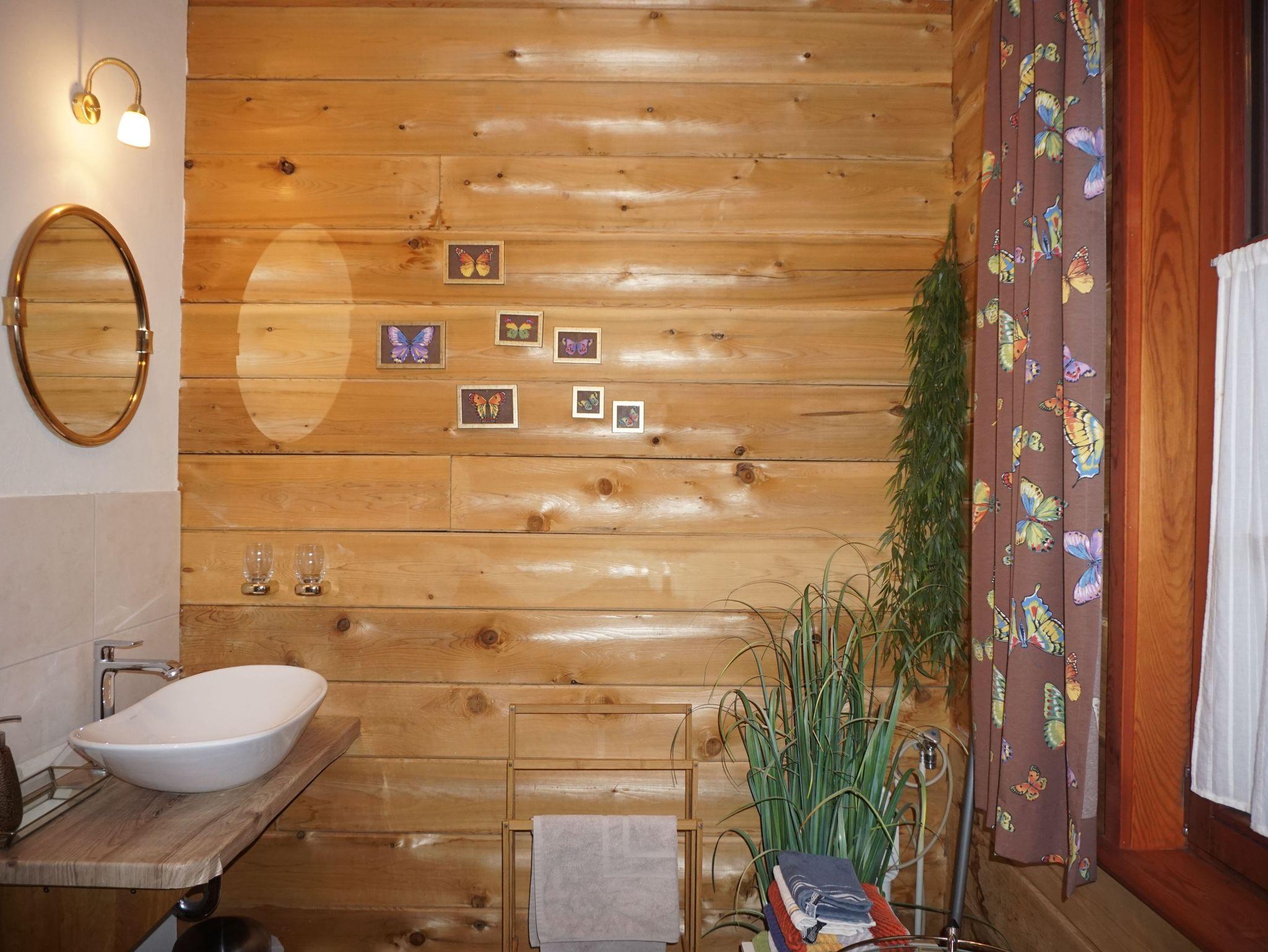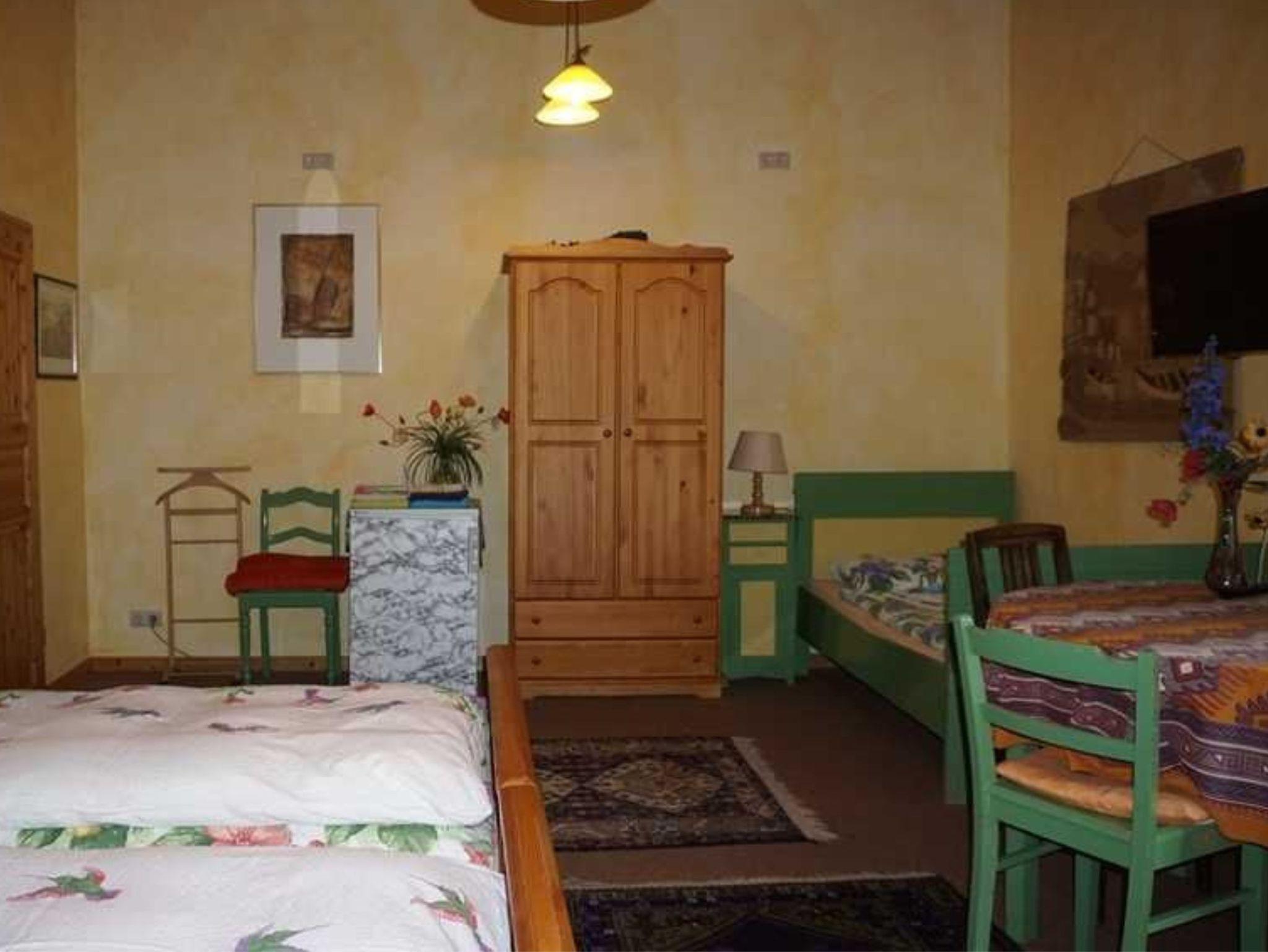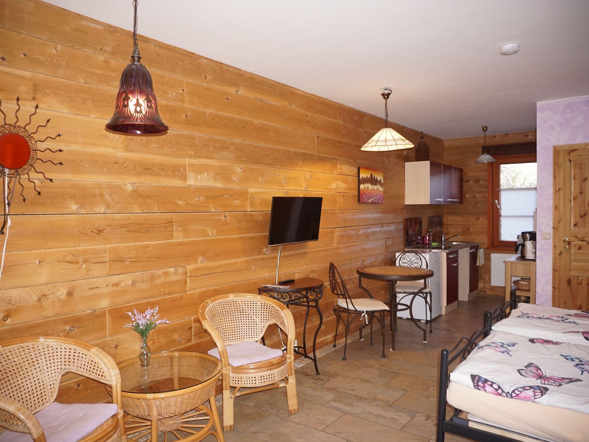 Dieses Zimmer liegt im kleinen Steinhaus (Baujahr 1995, komplett saniert 2022) und ist individuell mit Holzmöbeln eingerichtet - angenehm wohnlich und mit Blick ins Grüne. Durch Fenster und Glastür schauen Sie direkt in den Garten und genießen viel Licht sowie eine schöne, ruhige Atmosphäre.