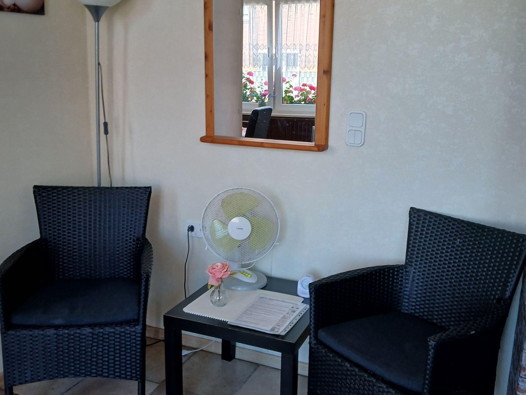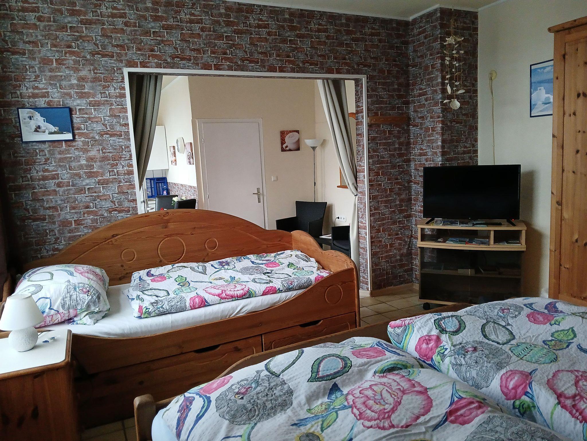 Niedliche kleine Ferienwohnung für 3 Personen. Offener Wohn-/ Schlafbereich mit Küchenzeile und Microwelle. Den Gästen steht ein Bad mit Dusche und WC, Sat-TV und Radio zur Verfügung. Auf Wunsch mit Kinderhochstuhl und Babyreisebett. Die Wohnung ist ca. 32 m² groß und befindet sich im Erdgeschoss.