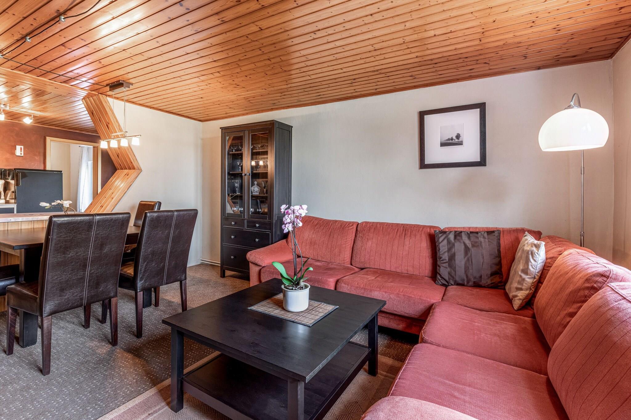 I 2. etasje: (åpent kjøkken(vannkoker, brødrister, komfyr(komfyr med 4 kokeplater, keramisk, elektrisk), kjøkkenvifte, kaffetrakter, stekovn, oppvaskmaskin, kjøleskap(+ fryser)), Stue/spisestue(TV(flatskjerm), spisebord(4 personer), sittehjørne), soveværelse(king size dobbeltseng), soveværelse(1 persons sovesofa, 1 persons sovesofa), bad(dusj(Frittstående dusj), håndvask, toalett), radio, oppvarming) hage(deles med andre gjester, inngjerdet), sykkelparkering, hagemøbler, solsenge, grill, parkering, fluktstoler, babyseng/sprinkelseng