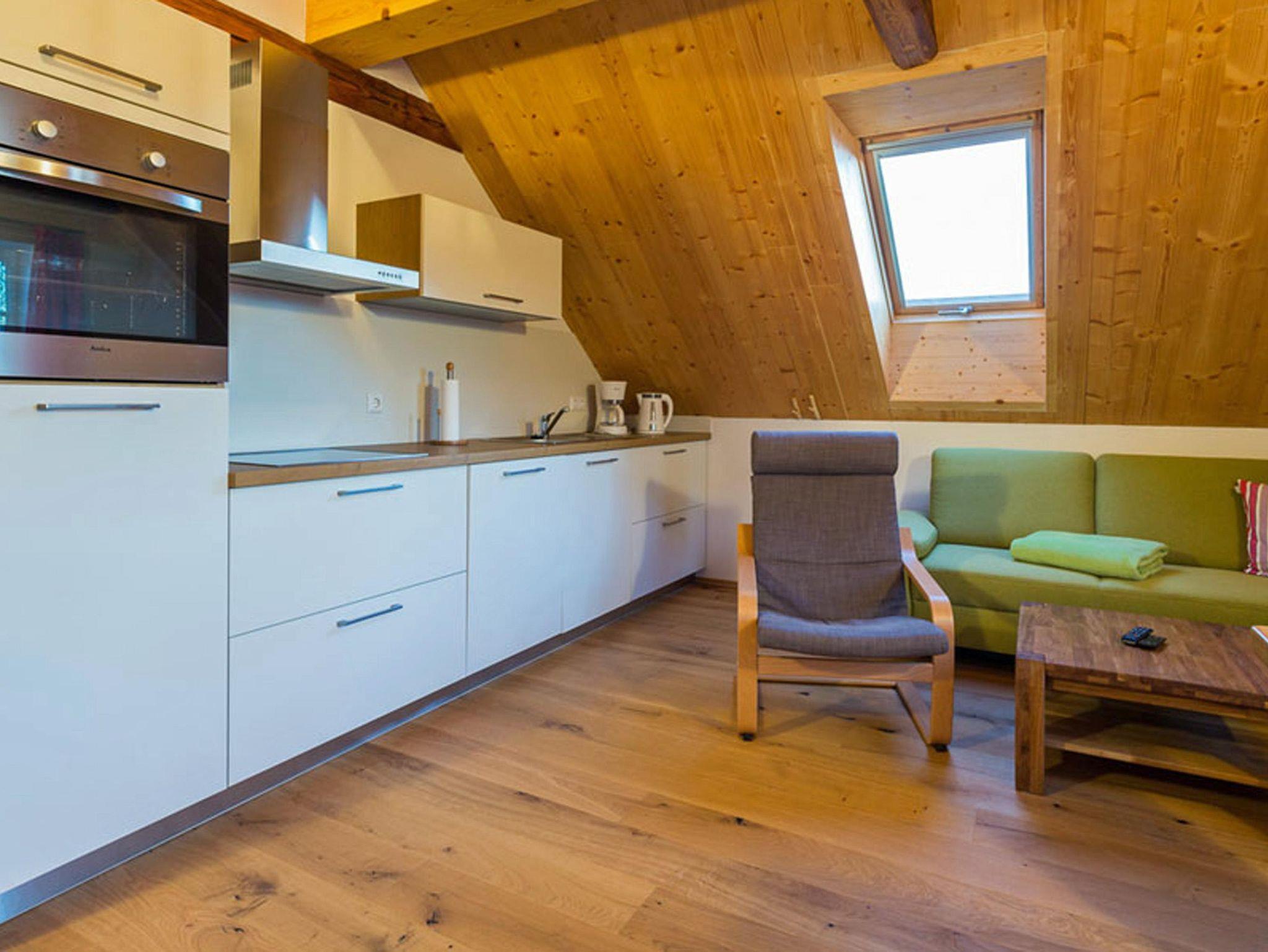 Die Ferienwohnung Lorenzstein liegt im Dachgeschoss des Hauses und ist über den Treppenflur erreichbar.