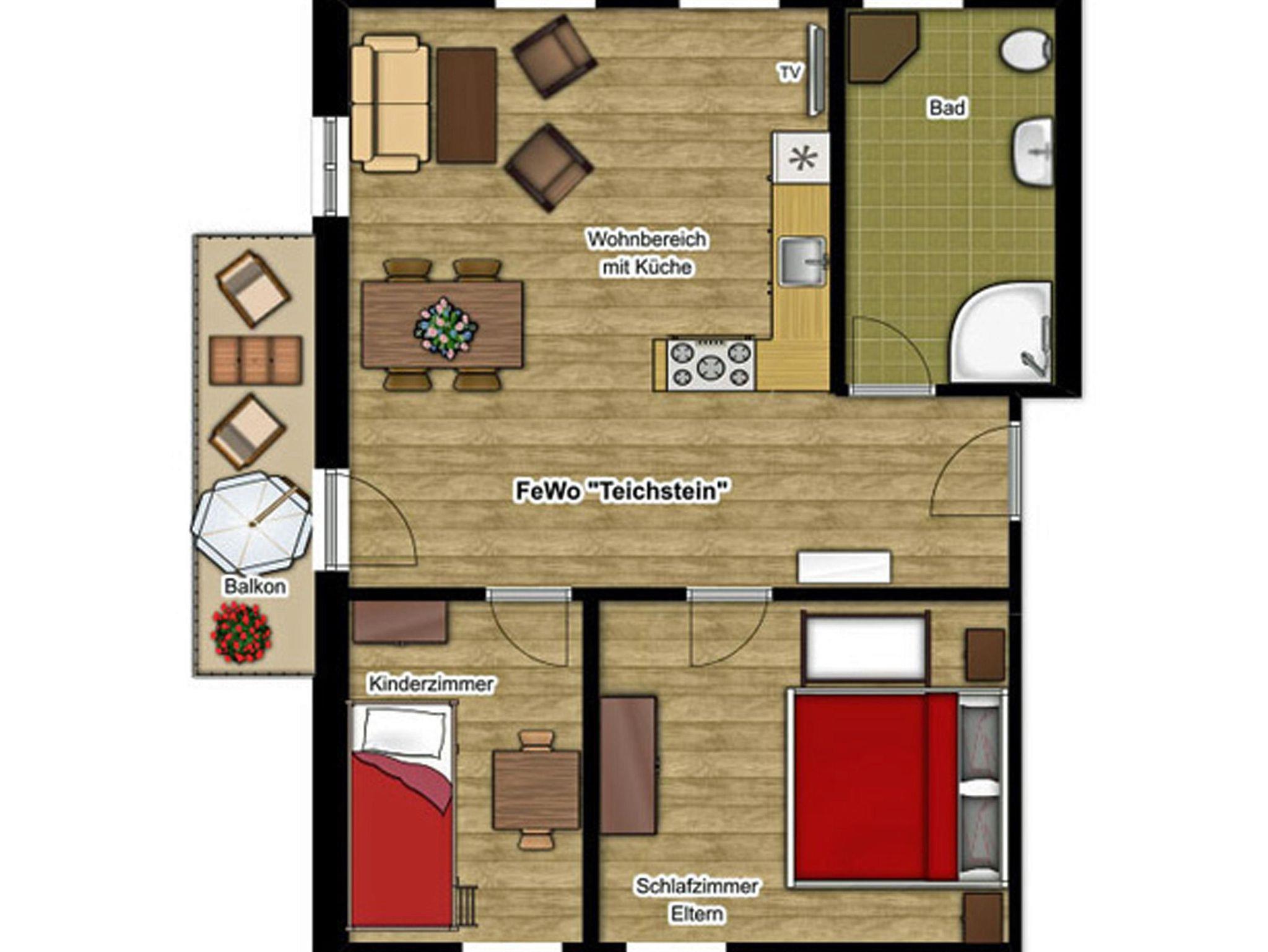 Ferienhaus Winterbergblick, Ferienwohnung "Teichstein", 2 Schlafräume