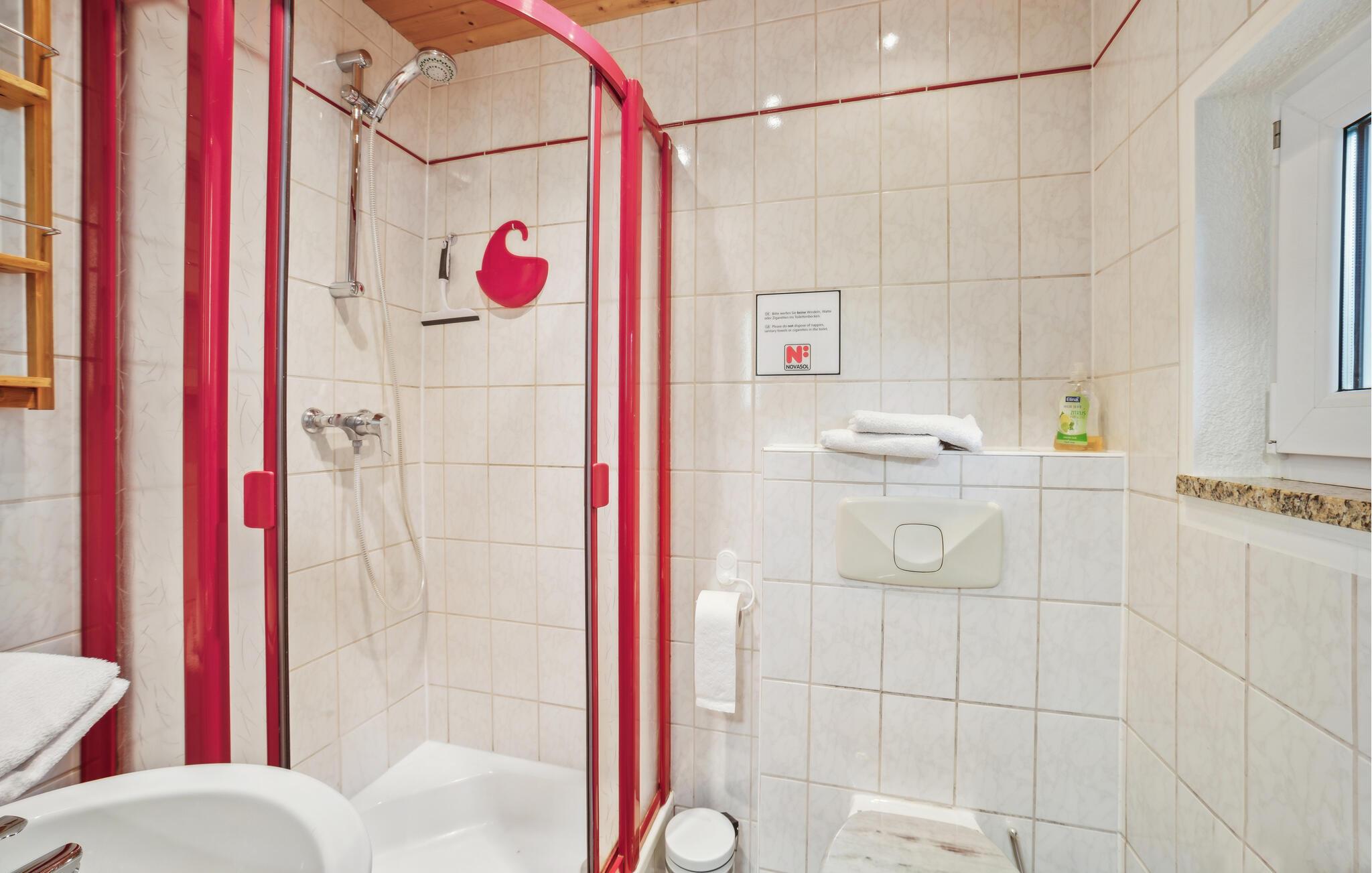 - WC med varmt og kaldt vann, Dusj