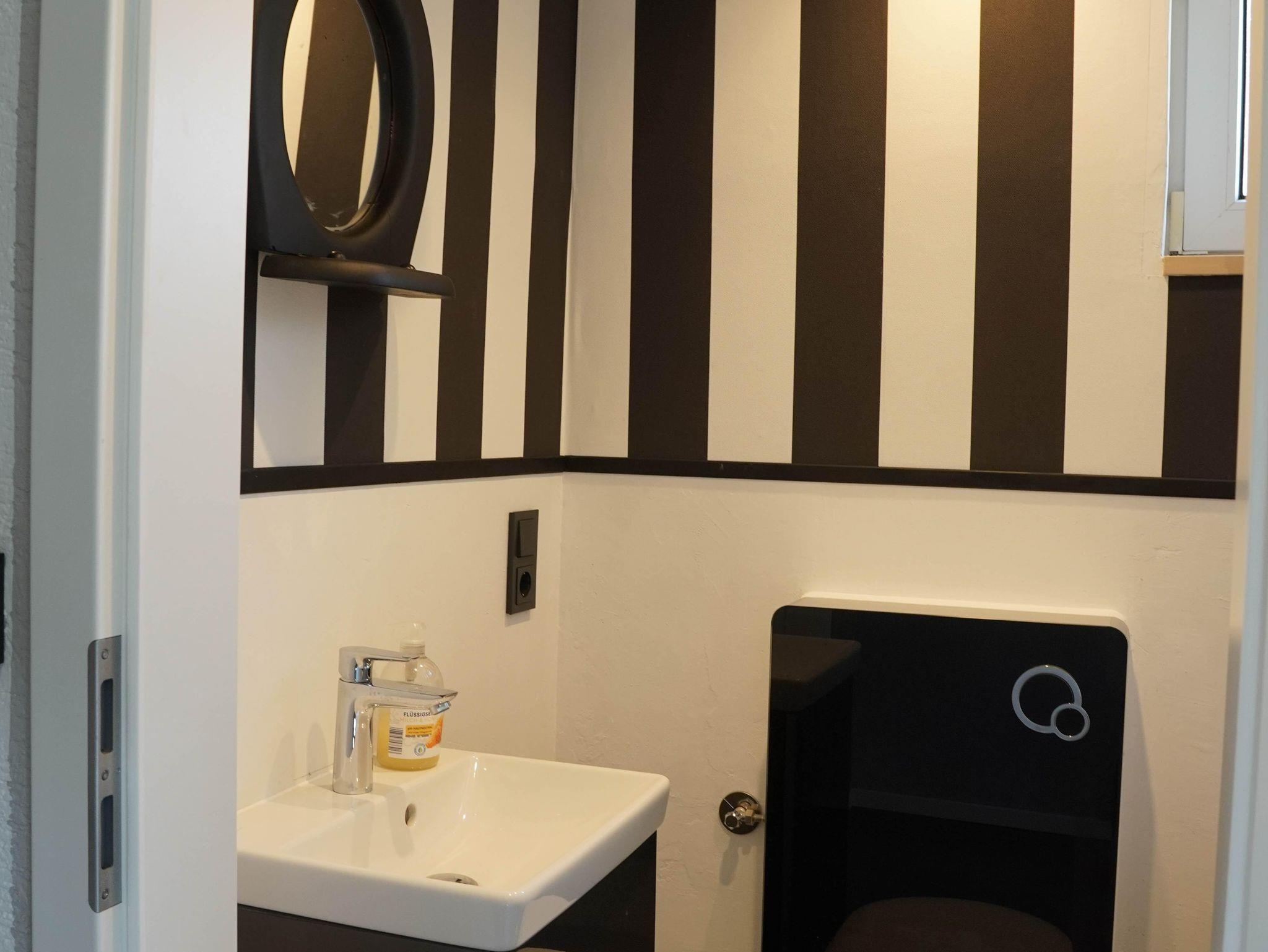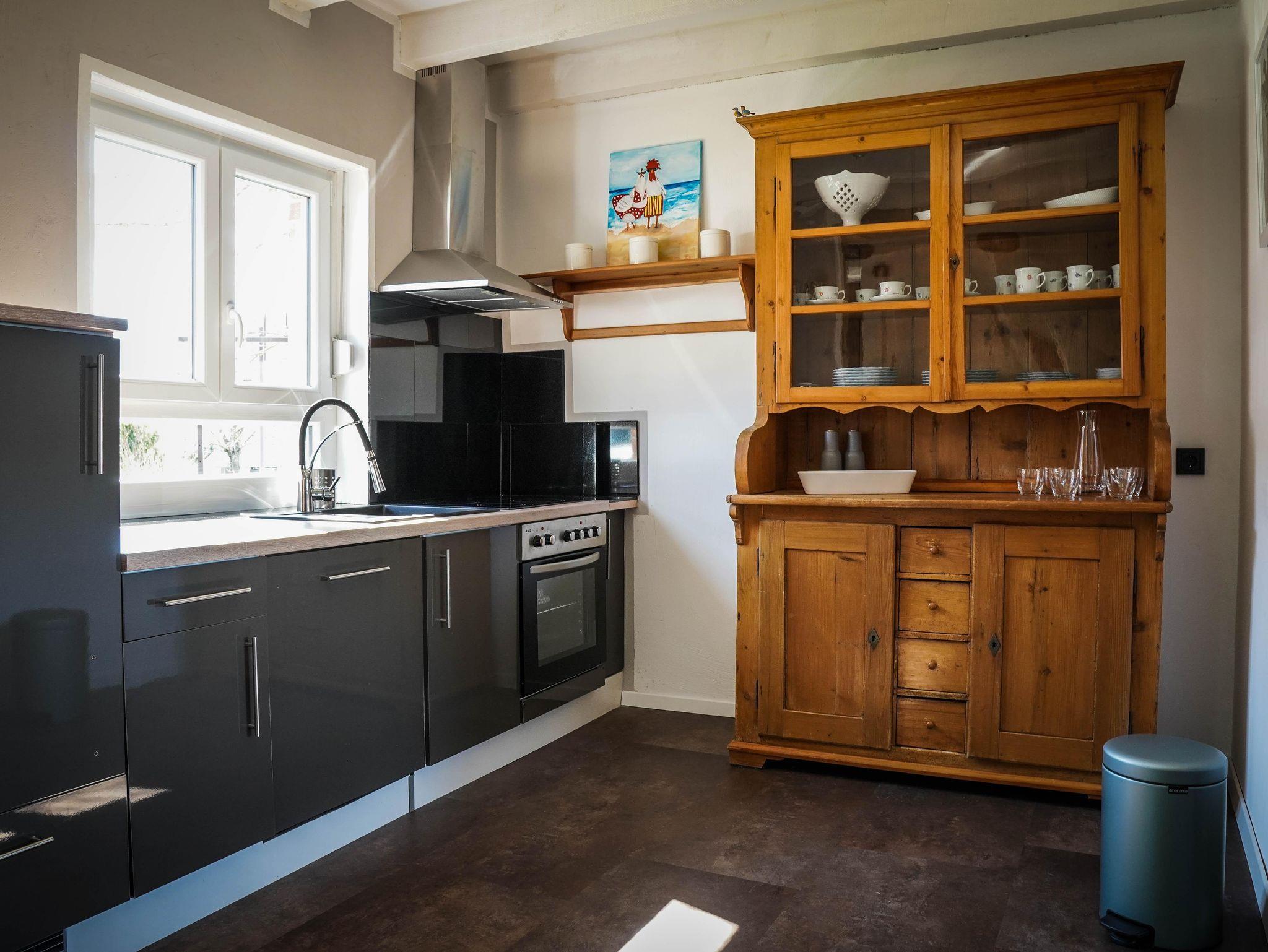 Im Erdgeschoss erwartet euch ein offener, heller Wohn- und Essbereich mit Pelletofen für wohlige Wärme an kühlen Tagen. Ein dritter Fernseher ist im Wohnbereich und die moderne Küche ist top ausgestattet (inkl. Backofen, Spülmaschine, Mikrowelle u.v.m.). Praktisch ist die separate Gästetoilette mit Waschmaschine und Trockner.