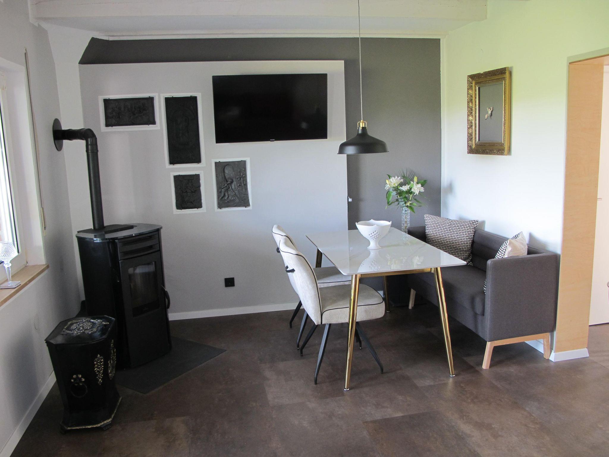 Ich bin das jüngere Haus von uns beiden Eifel-Quartieren und ich lebe seit 40 Jahren in der Nähe des Ernstberges am Ortsrand von Hinterweiler. (Circa 1 km von Kirchweiler sowie 8 km von Daun und Gerolstein entfernt). Ich wurde wie meine Schwester grundsaniert.