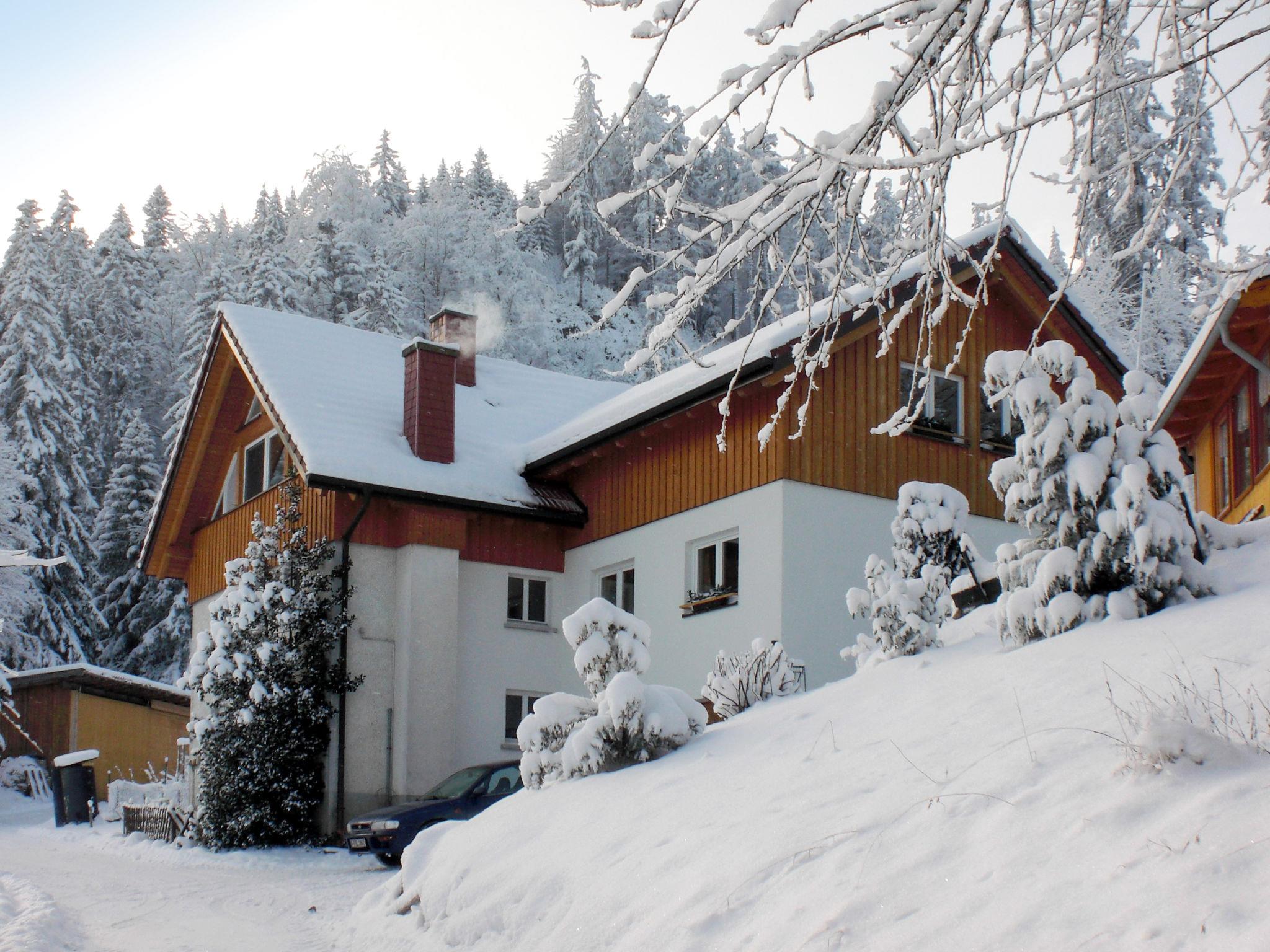 Agricultural estate "Mühlenmichelshäusle", 1'100 m a.s.l.. Above Hinterzarten 3 km from the centre of Hinterzarten, 6 km from the centre of Titisee, 30 km from the centre of Freiburg im Breisgau, in an elevated position on a slope, 5 km from the lake, in a cul-de-sac. For shared use: property with meadow. In the house: storage room for skis. Available: sledges. Bread roll service. 1 km long narrow motor access. In Winter: please take snow chains. Parking on the premises. Supermarket 3 km, bus stop "Hinterzarten Busbahnhof" 1.4 km, railway station "Hinterzarten Bahnhof" 1.4 km. Golf course (18 hole) 4.5 km, ski lift, slopes 50 m. On the estate animal husbandry. Local sale of farm products.