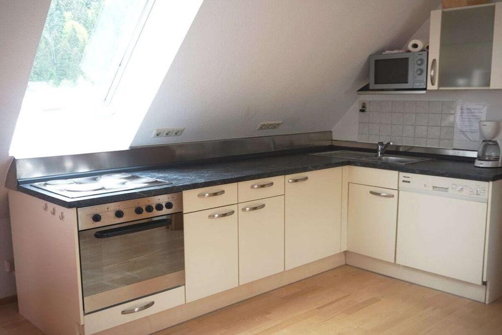 Vår ferieleilighet ligger i det tidligere kornmagasinet, i toppetasjen av et hus bygget i 1830. Den består av et soverom, en stue med kjøkkenkrok og et lite bad med dusj og toalett. En kakkelovn i stuen bidrar til den koselige atmosfæren. Store vinduer gir vakker utsikt og rikelig med naturlig lys. Leiligheten er kjærlig innredet med lyse og muntre farger. En plen med hagemøbler og en grillplass står til din disposisjon. Vi gleder oss til å ønske deg velkommen som våre gjester i Schwarzwald.