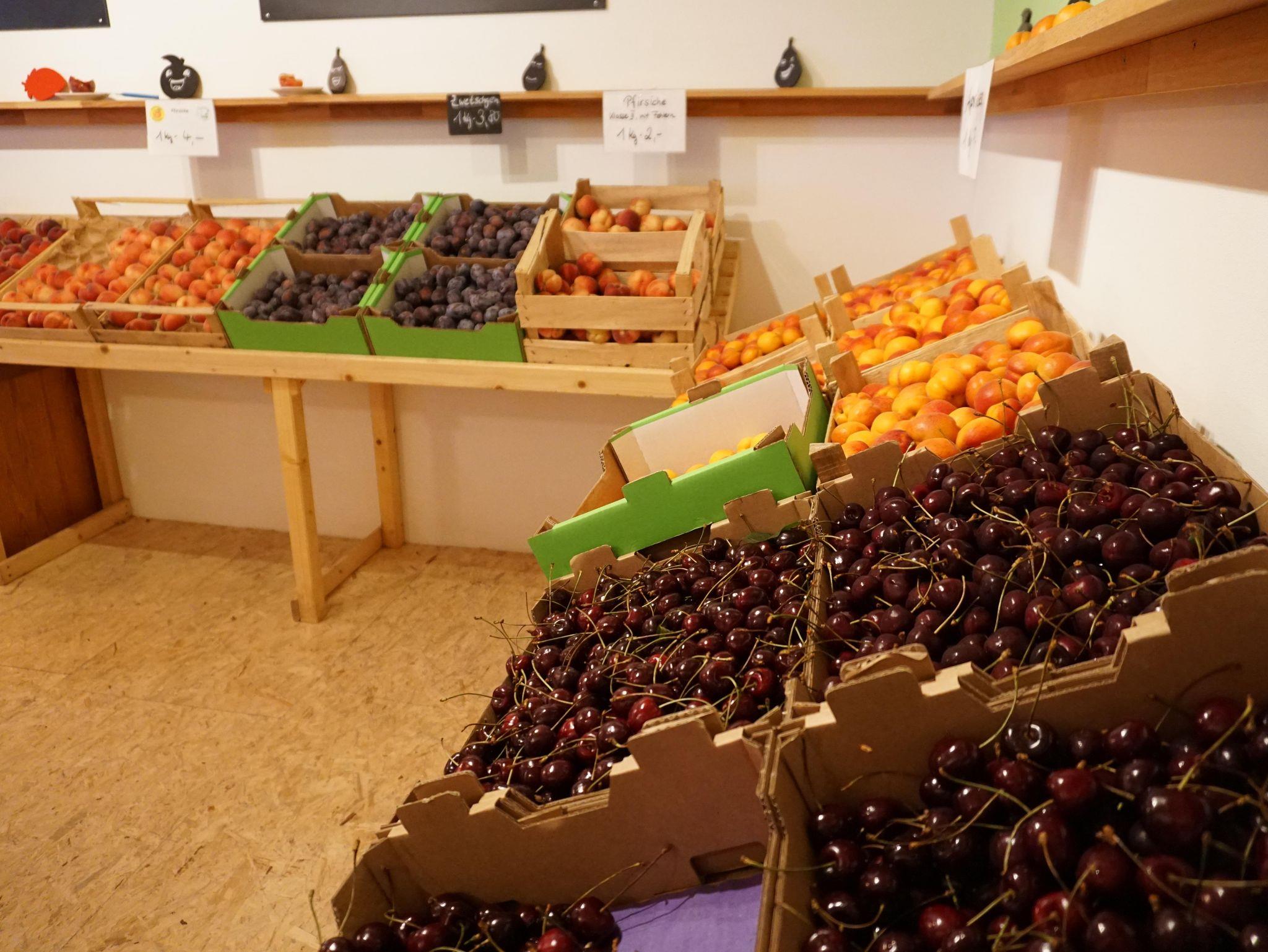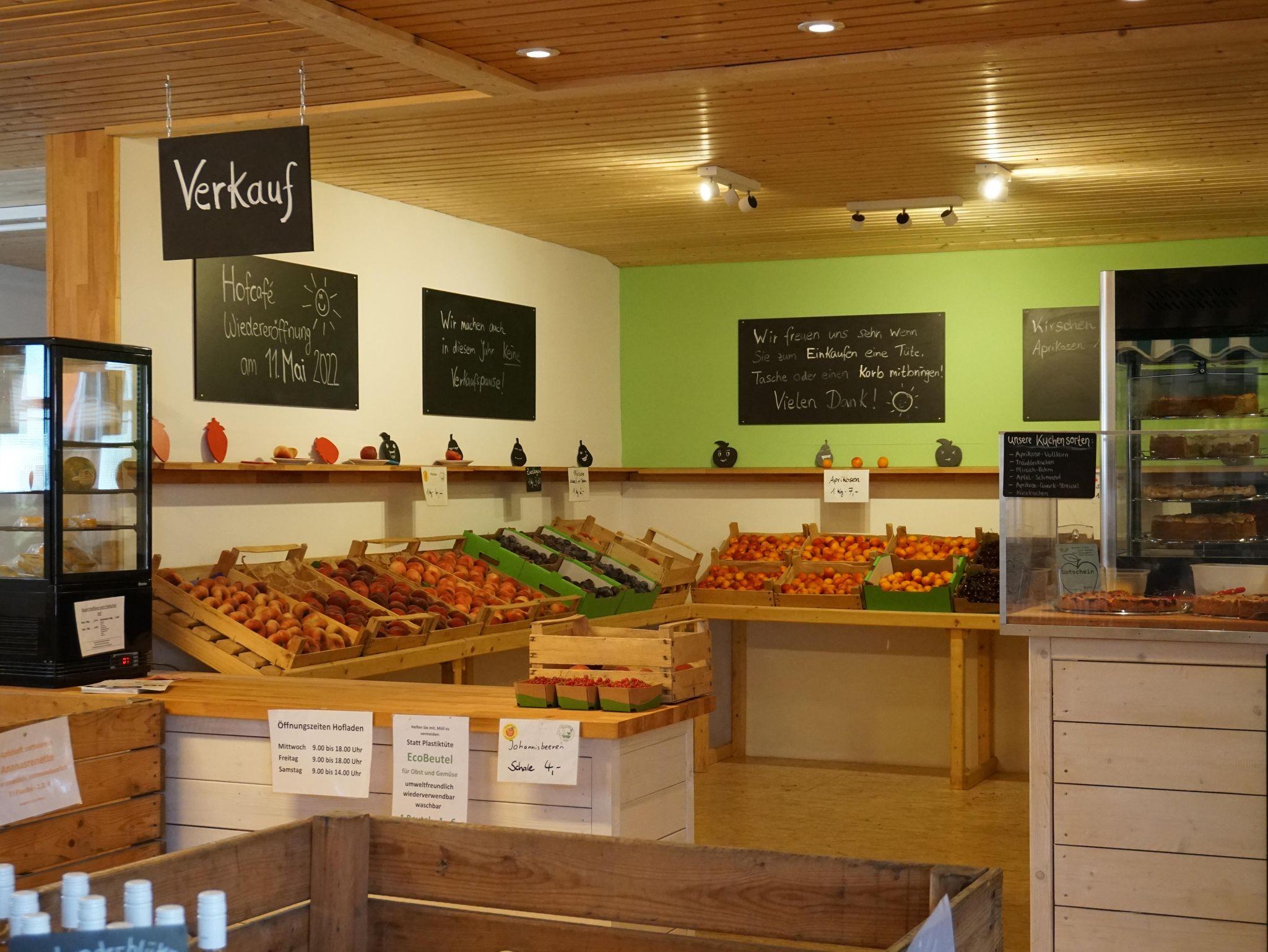 Du wohnst direkt dort, wo unser Obst wächst – erlebst die Jahreszeiten hautnah und kannst in unserem Hofladen regionale Produkte kaufen oder im angrenzenden Hofcafé Kaffee und Kuchen genießen. Je nach Saison erwarten dich frische Äpfel, Pfirsiche, Zwetschgen oder Beeren.