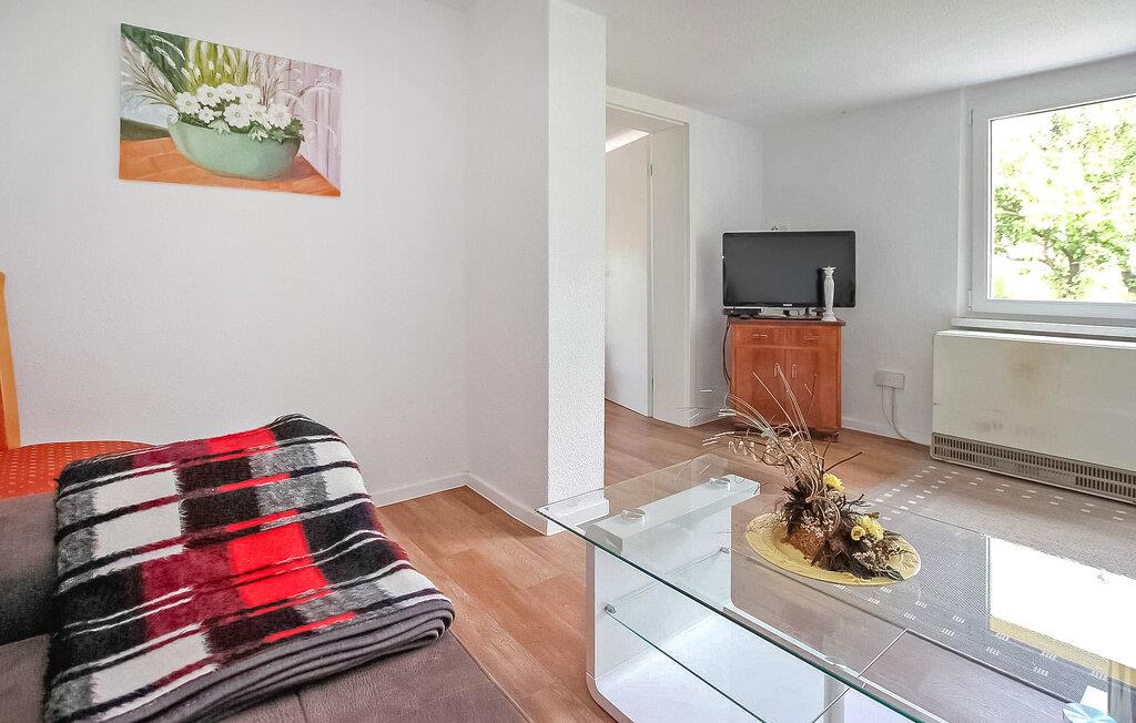 Den ca. 65 m² store, totalrenoverte ferieboligen i første etasje for opptil 5 personer fra 2019 har en stor stue (polstrede møbler med sovefunksjon som ekstra seng, flatskjerm-TV), to soverom (1 x dobbeltseng, gjennomgang til det andre rommet, 1 x to enkeltsenger), et romslig, moderne kjøkken (elektrisk komfyr med stekeovn, kombinert kjøleskap og fryser, oppvaskmaskin, diverse små kjøkkenapparater, spisebord, utgang til terrassen) og et bad med dusj/WC. Oppvarming via nattoppvarming (elektrisk).
