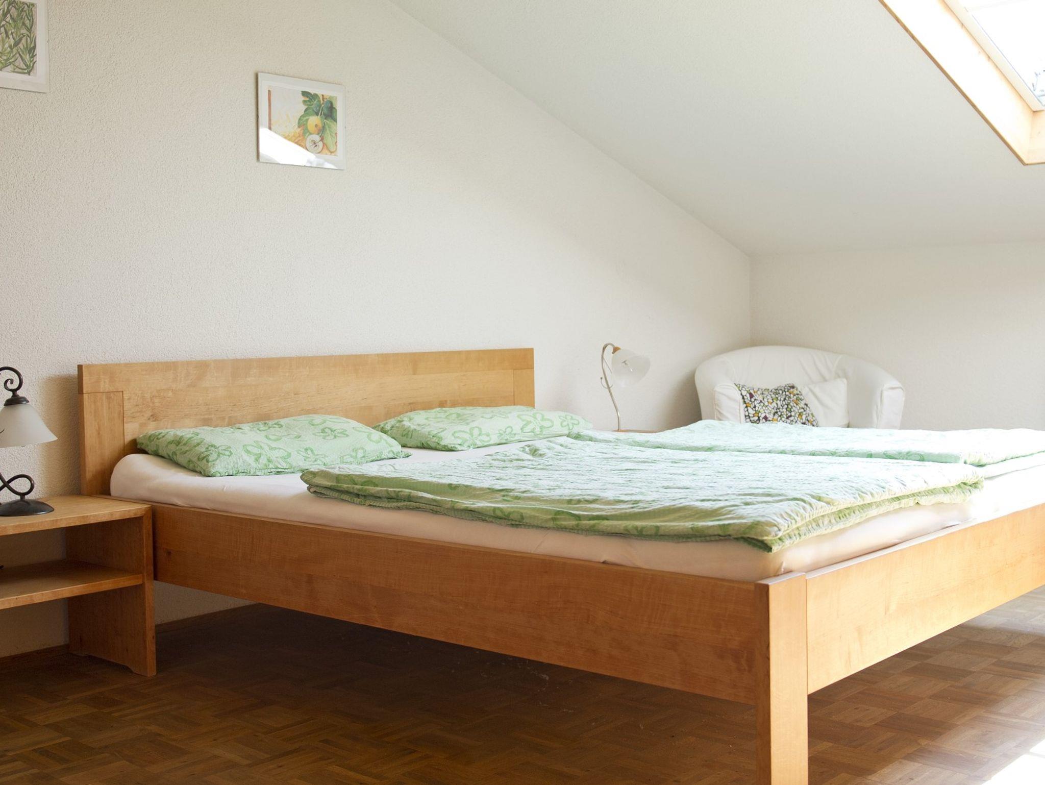 Die Wohnung Unterm Dach ist ca. 110m² groß und sehr schön mit naturbelassenen Vollholzmöbeln vom Schreiner, geölten Parkett- und Fliesenböden eingerichtet.