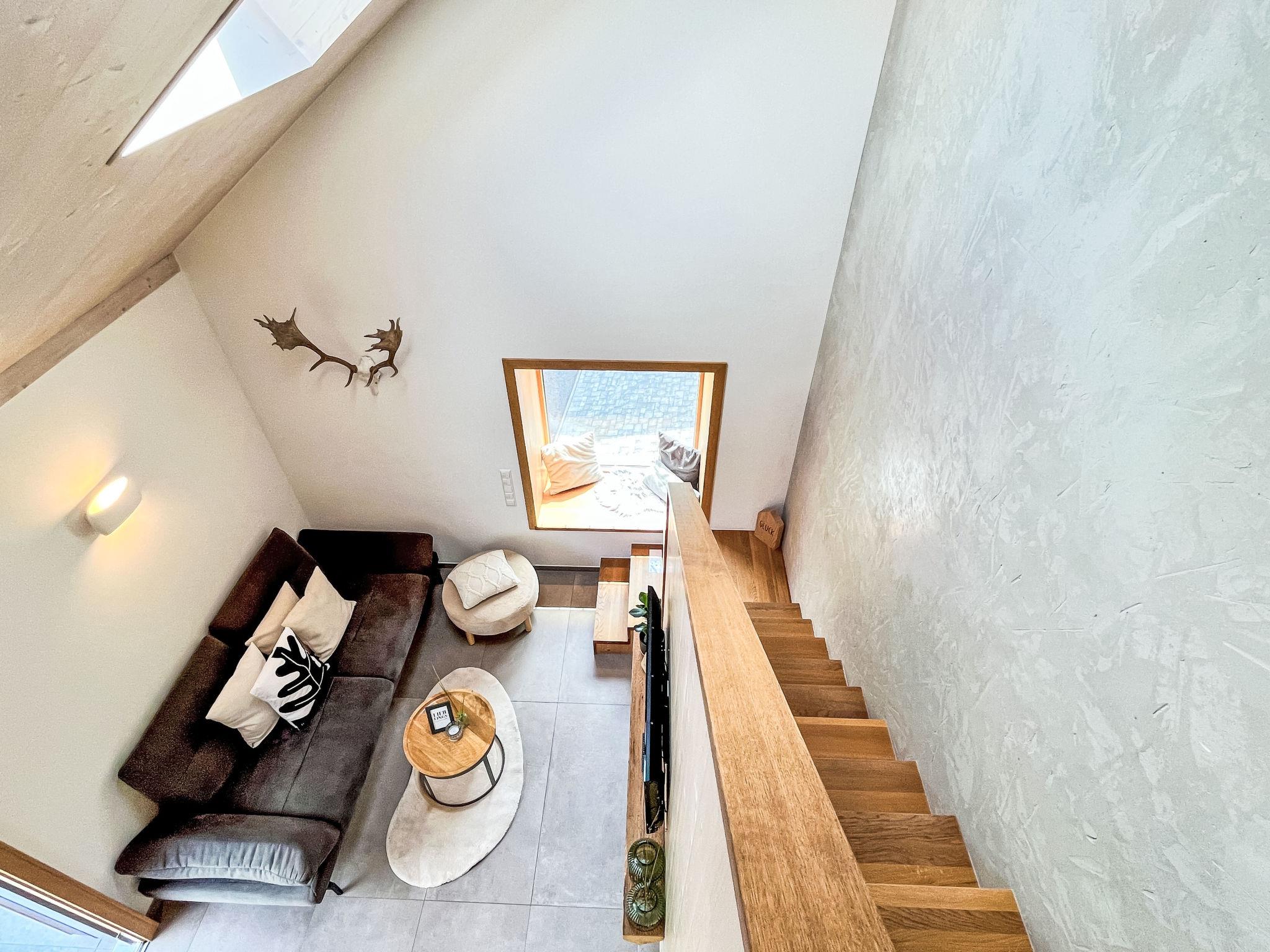 "Kinast (HFT202)", 3-room apartment 70 m2 on 2 levels on 1st floor. Modern and tasteful furnishings: living/dining room with satellite TV. Exit to the balcony. 1 room with 1 double bed and shower/WC. Open kitchen (oven, dishwasher, 4 ceramic glass hob hotplates, electric coffee machine) with dining nook. Upper floor: open gallery. 1 room with 1 double bed. Shower/WC. Underfloor heating. Balcony. Balcony furniture. Facilities: hair dryer. Internet (WiFi, free). Parking (2 cars). Please note: non-smokers only. Smoke alarm.