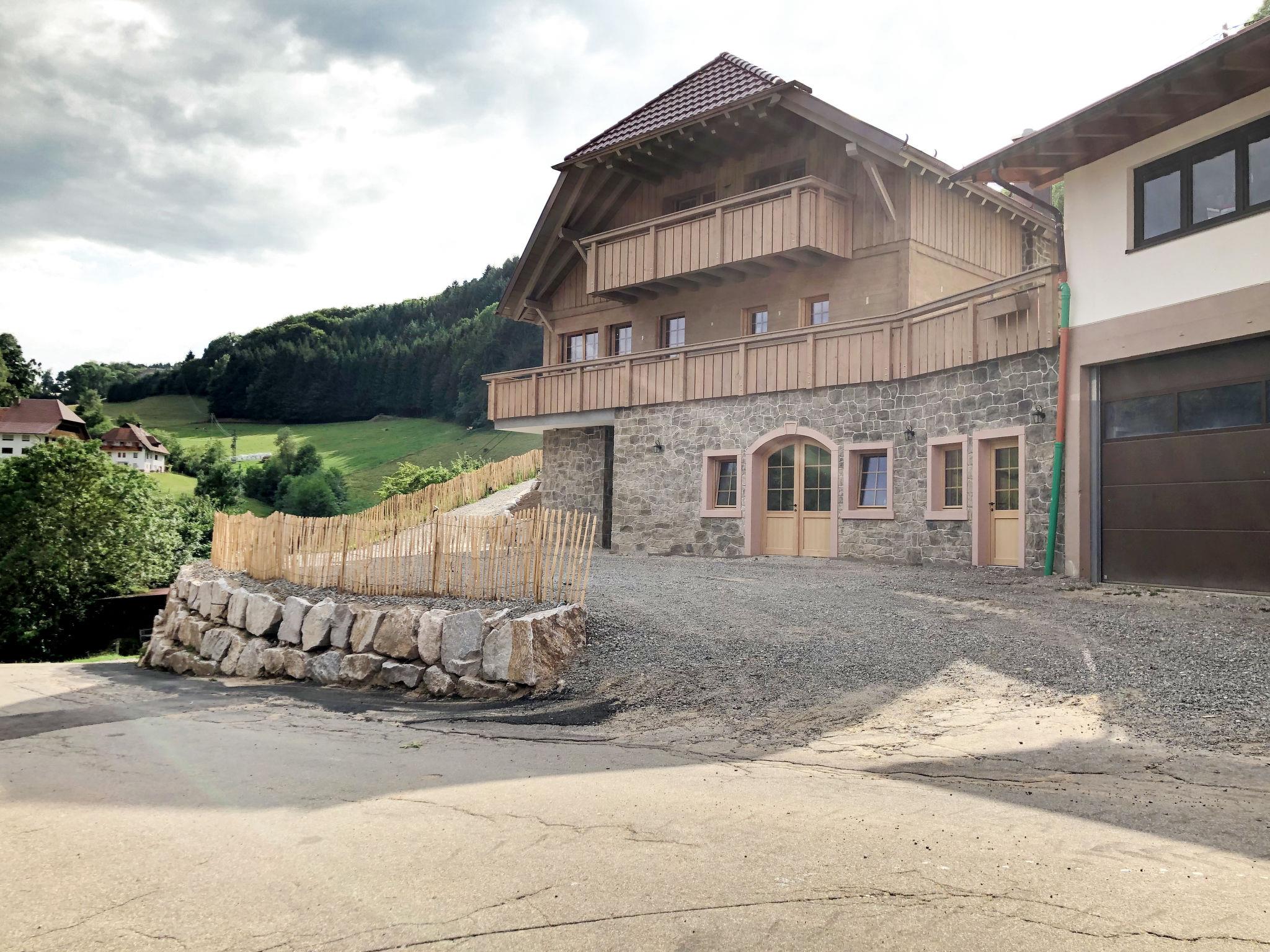 2-family house "Schmalzenhof", 500 m a.s.l., 3 storeys. 3 km from the centre of Hofstetten, 5 km from the centre of Haslach, 40 km from the centre of Freiburg. Stepped path (16 steps) to the house. Supermarket 5 km, bus stop "Haslach, Otto-Laible-Strasse" 5.5 km, outdoor swimming pool 3 km, indoor swimming pool 11 km. Golf course (9 hole) 22 km. Please note: car recommended. On the estate animal husbandry. Local sale of farm products. The owner lives on the same property. The owner has a dog. Vesperstube on the ground floor (only open for events by appointment).