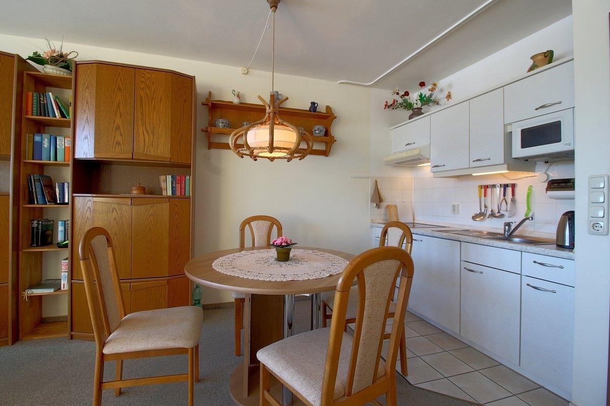 Gemütlich ausgestattete Nichtraucher- Ferienwohnung mit einem Schlafraum mit zwei Einzelbetten (0,90 x 2,00 m) und einer Schlafcouch (1,40 x 2,00 m) im Wohnraum.