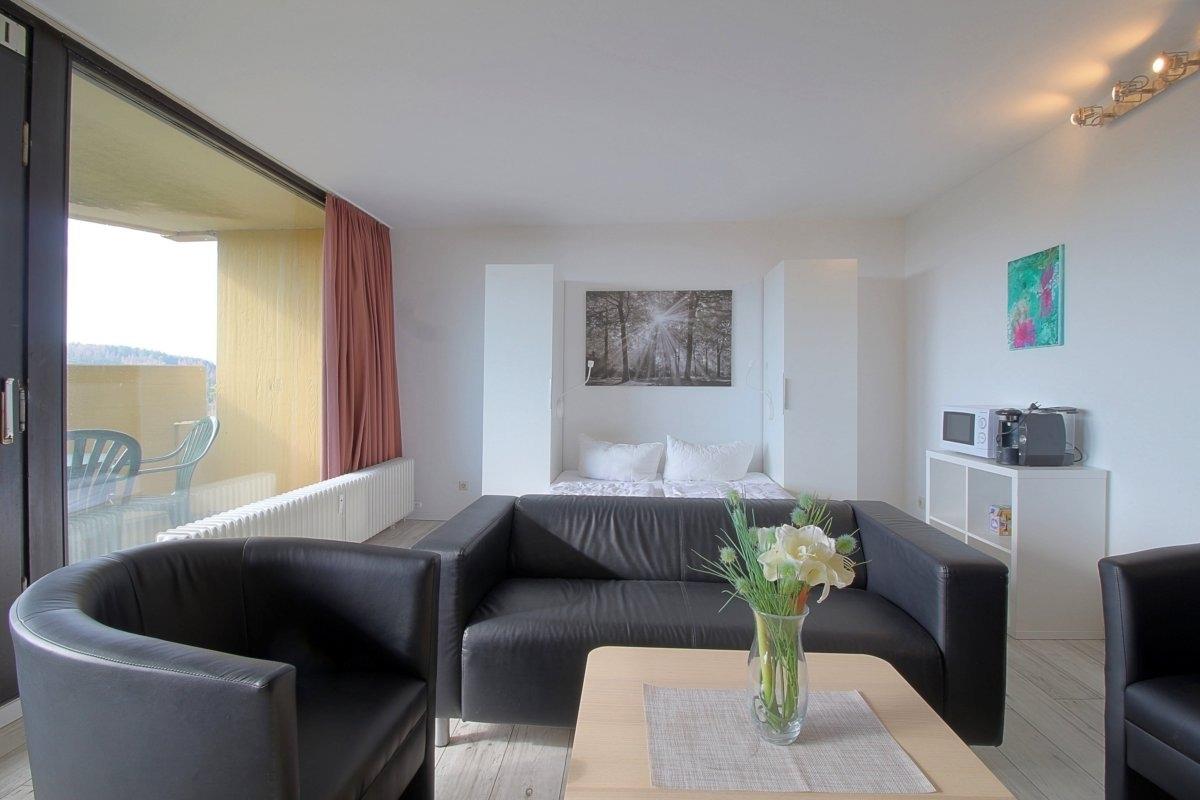In der 12. Etage liegt diese Ferienwohnung mit 1 Schlafzimmer. Kostenlose Schwimmbad Nutzung im Haus, Sauna gegen Gebühr, Minigolf, Rodelbahn und Spielplatz direkt am Haus.