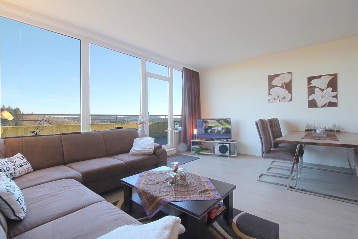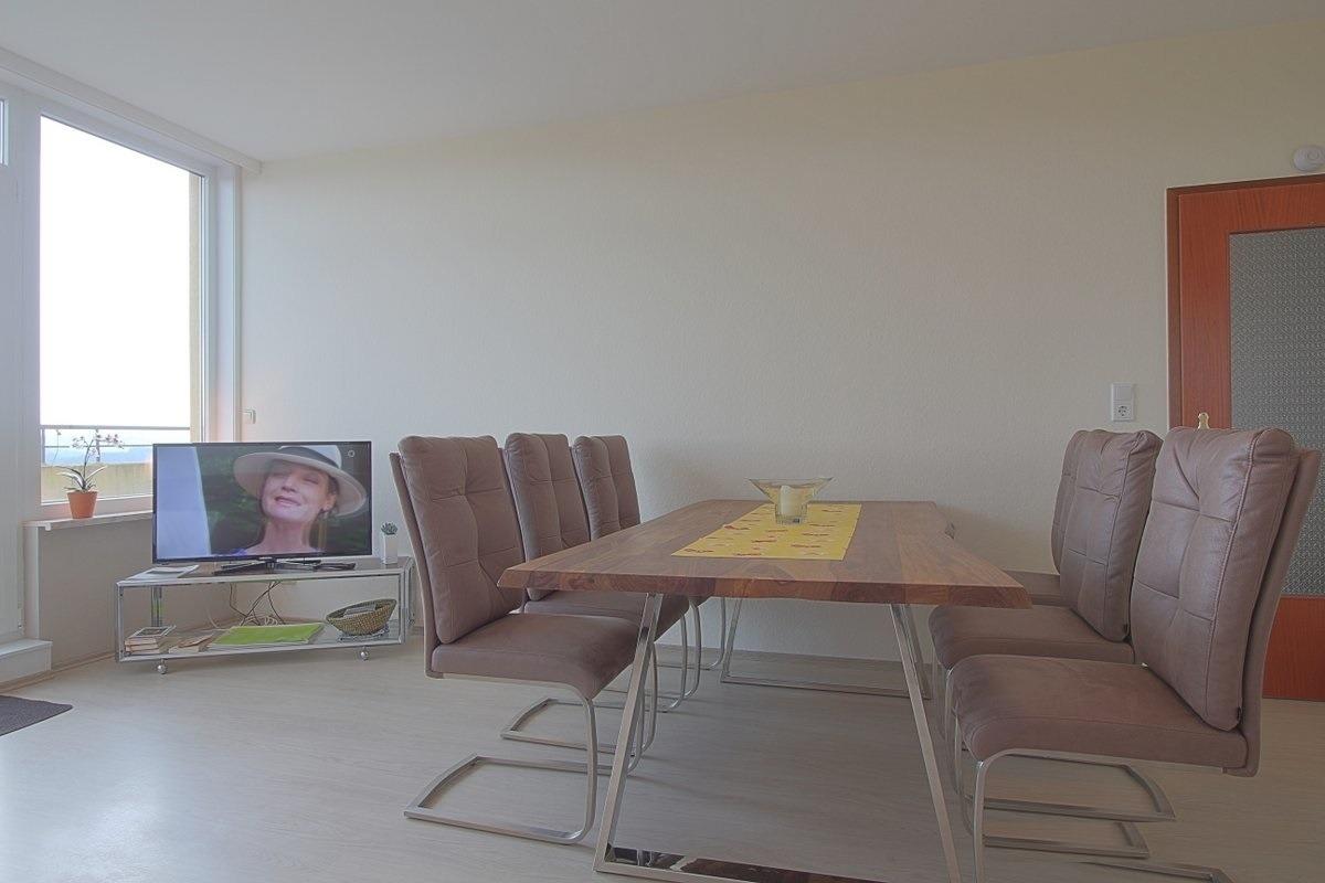 Hochwertig eingerichtete Nichtraucher-Penthousewohnung. Die Wohnung verfügt über einen großzügigen, lichtdurchfluteten Wohnraum mit Essplatz für bis zu 8 Personen. Hier können Sie mit der ganzen Familie Urlaub machen.