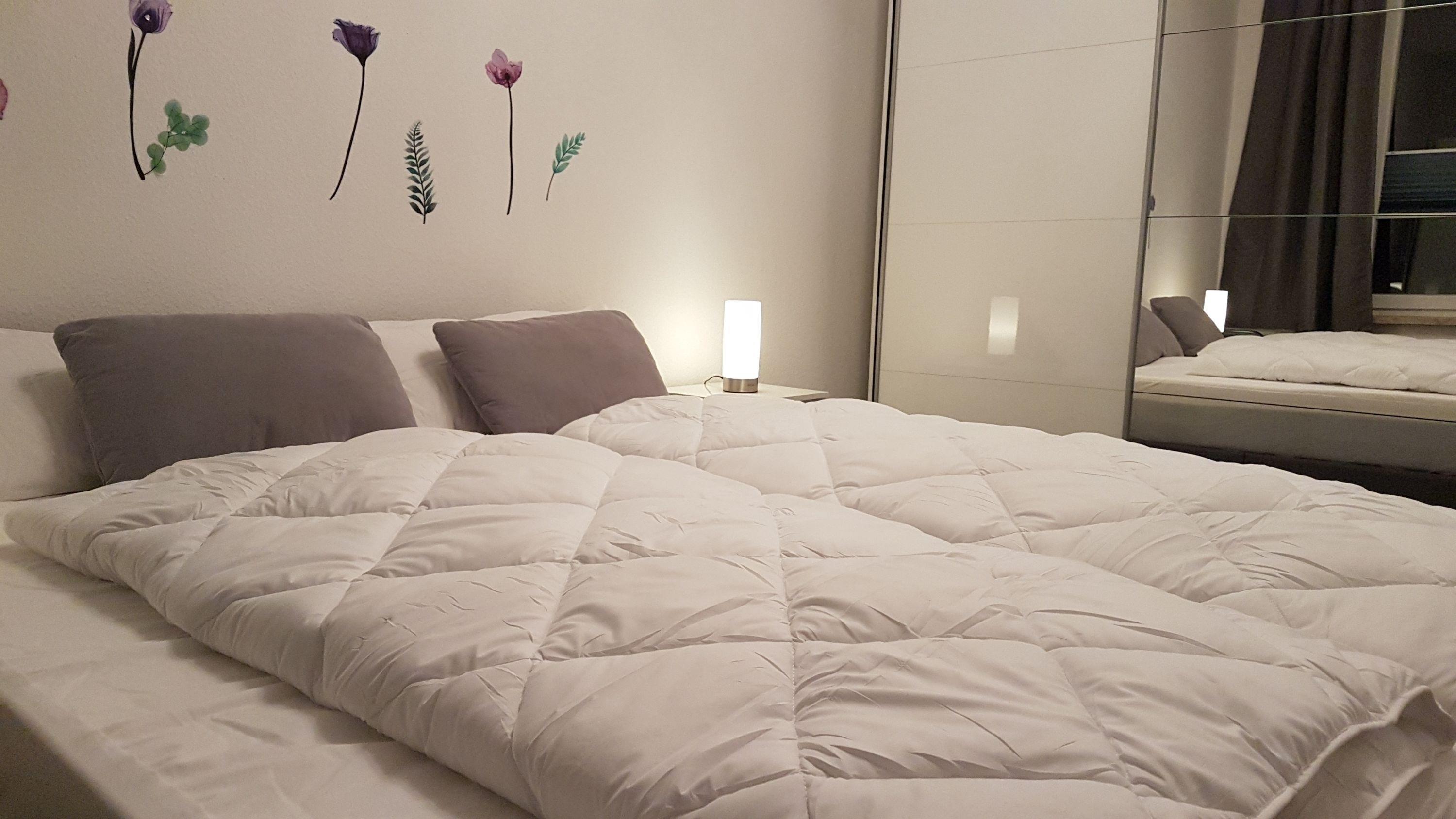 Ein hell gefliestes Duschbad mit WC[nbsp] gehört zur Ausstattung. Bettwäsche ist bei Anreise schon da, die Betten sind bezogen.