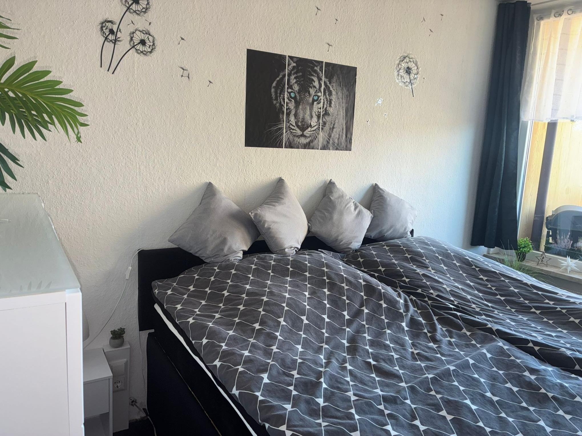 Neue Küche mit Geschirrspüler, Essecke und Wohnraum mit bequemer Sitzgarnitur. Der Wohn-und Schlafbereich ist mit Teppichboden ausgestattet. Kostenloses W-Lan in der Wohnung vorhanden.