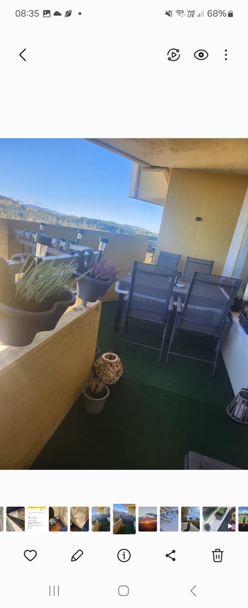Das Appartement verfügt über einen geräumigen, sonnigen Balkon mit Gartenmöbeln. Ihr Hund darf auch mitkommen