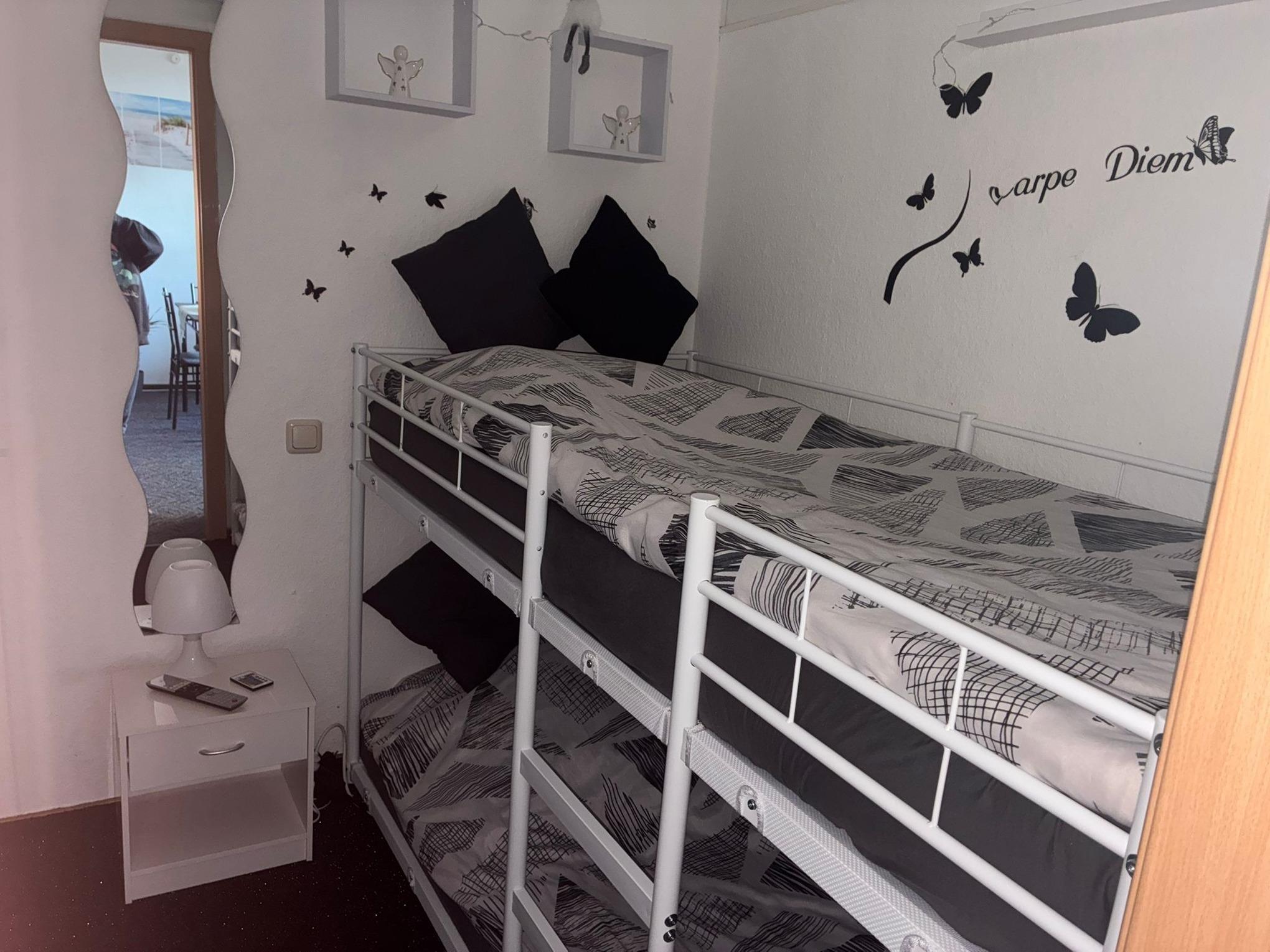 Komfortabel ausgestattete, Nichtraucher- Ferienwohnung mit einem Schlafraum mit Doppelbett (1,80 x 2,00 m) und Stockbett für die Kinder im zweiten Schlafraum, beide Schlafräume mit TV.