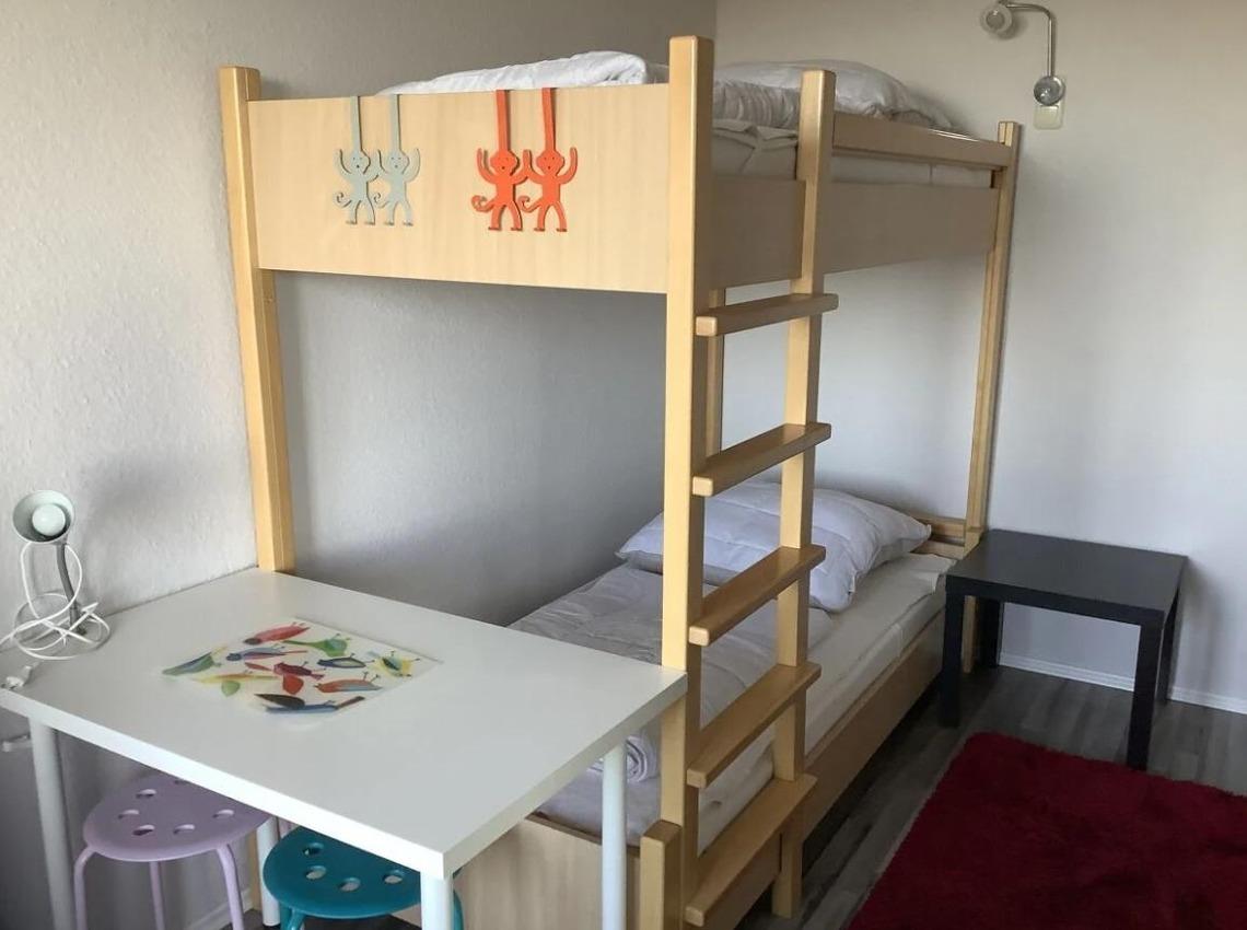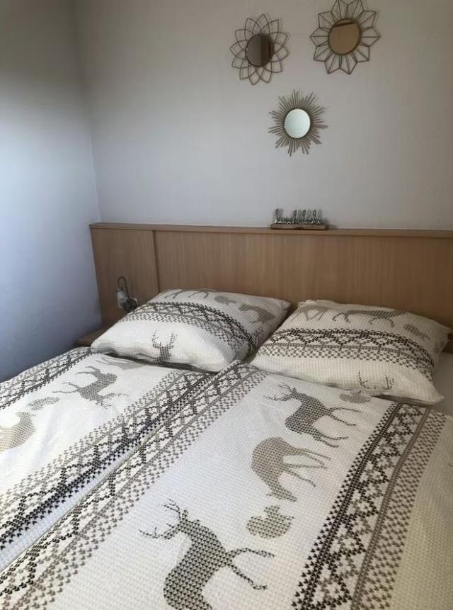 Die Wohnung verfügt über einen Flur, ein Wohnzimmer mit Essbereich und integrierter Küchenzeile, Duschbad und 2 Schlafzimmer, beide mit Tageslicht/Fenster (((eine von wenigen Wohnungen im ganzen Komplex). Das 1. Schlafzimmer ist mit einem Doppelbett 1,60x200m, das 2. Schlafzimmer mit Etagenbett je 0,90x200m eingerichtet.