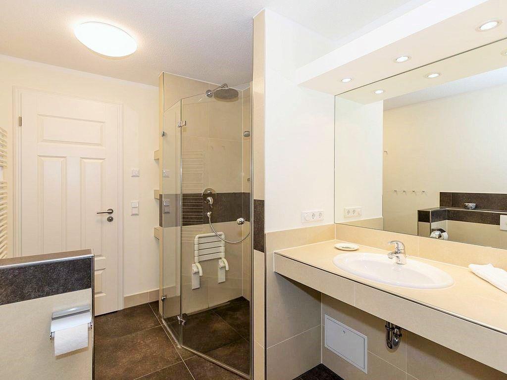 Das Appartement verfügt über 2 separate und moderne Badezimmer / WC. Das 1. Bad ist mit einer Badewanne und einer begehbaren ebenerdigen Raindance-Dusche, das 2. Bad mit einer begehbaren ebenerdigen Dusche ausgestattet. Beide Bäder verfügen über große Waschbecken mit großflächigen Wandspiegeln, WC, Kosmetikspiegel, Föhn, Handtuch-Heizkörper sowie ausreichend Ablagemöglichkeiten.
