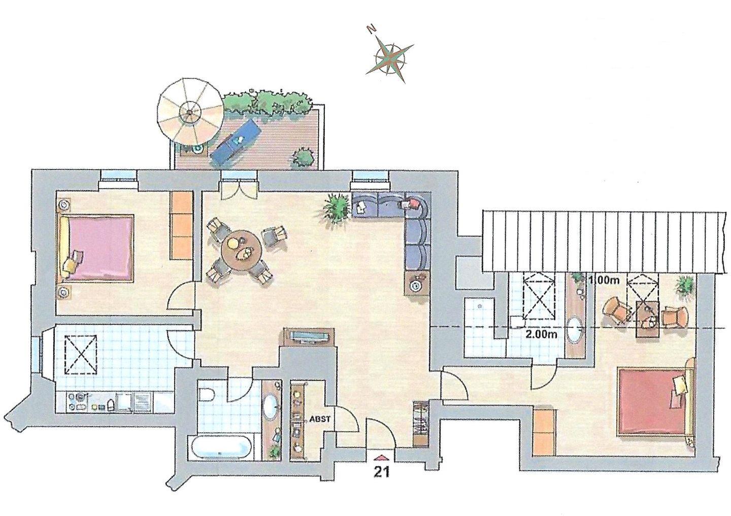 Die Ausstattungsbeschreibung beruht auf Angaben der Eigentümer, Irrtümer und Änderungen bleiben vorbehalten! Der beigefügte Grundriss dient als Skizze – die tatsächliche Möblierung kann leicht abweichend sein.