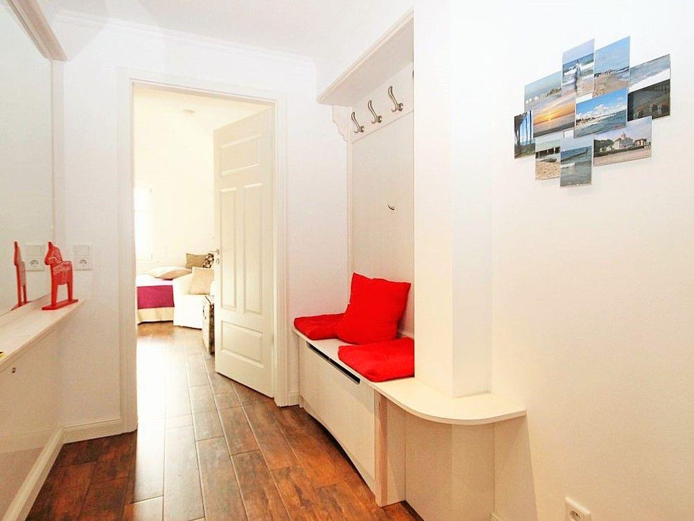 Von der geräumigen Diele im Eingangsbereich mit Garderobe, großem Wandspiegel und Sitzbank erreichen Sie bequem alle Räume Ihrer Ferienwohnung.