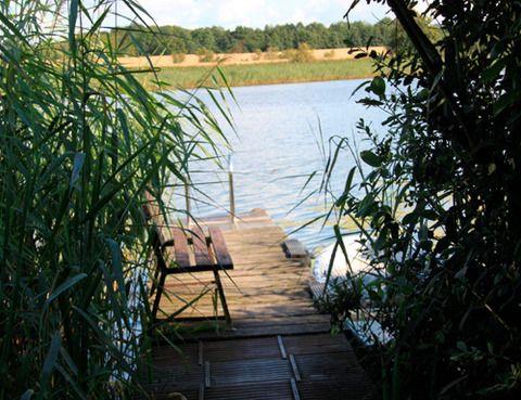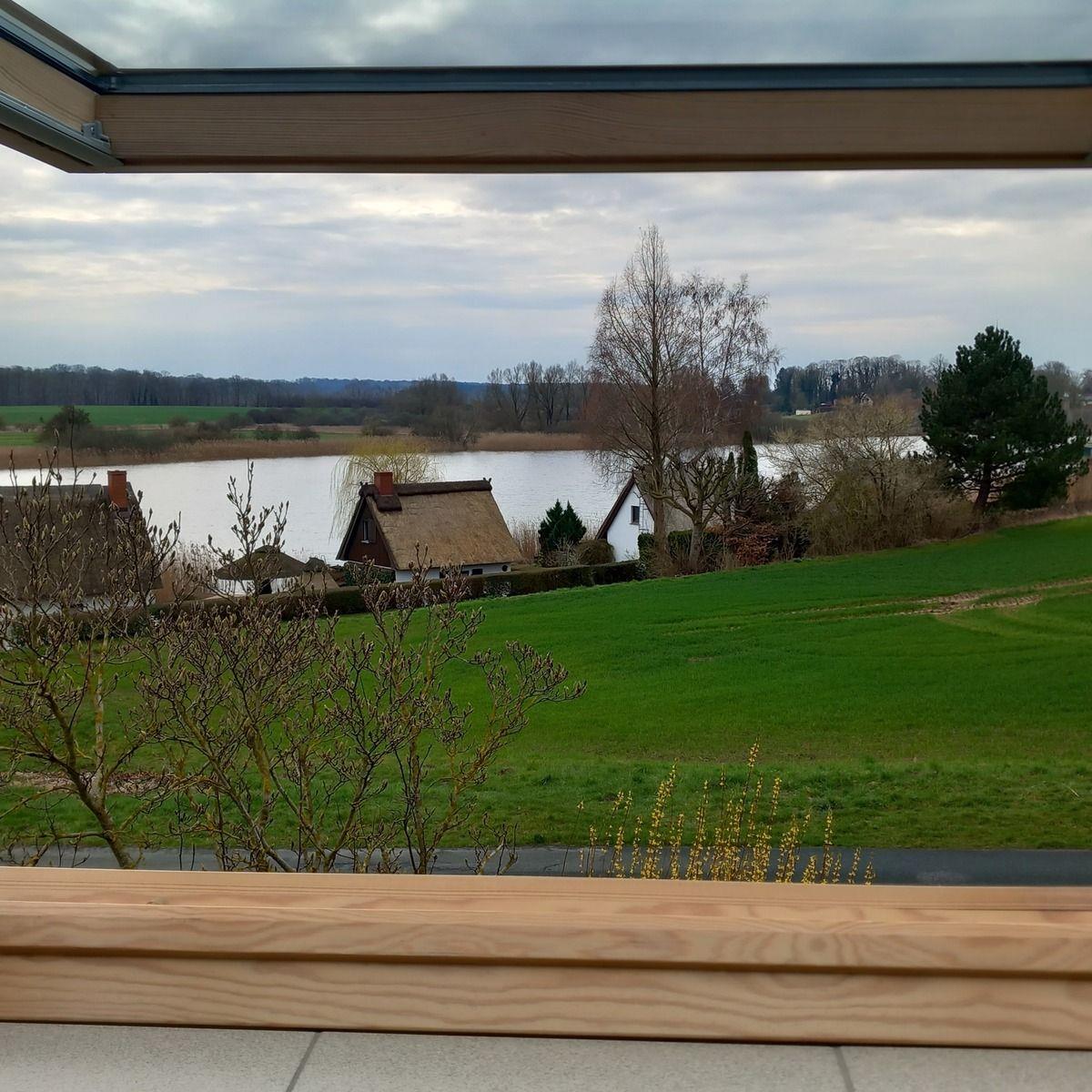 Sie betreten die liebevoll gestaltete und dekorierte Ferienwohnung über einen separaten Eingang am Giebel des Hauses. Vor der Eingangstür ist eine kleine überdachte Holzterrasse mit einem Tisch und zwei Stühlen. Hier können Sie die Morgensonne beim Frühstück oder die Abendstille bei einem Gläschen Wein genießen. Die Ferienwohnung besteht hauptsächlich aus einem großen Zimmer mit einem traumhaften Blick auf den Papensee. Der Wohn- und Essraum ist ausgestattet mit einer natürlich gestalteten Einbauküche. Darin finden Sie einen Backofen, ein Ceranfeld, eine Mikrowelle, einen Geschirrspüler, einen Kühlschrank mit Gefrierfach und alles was Ihr Herz begehrt. Vor der Küche steht ein Holzesstisch mit Stühlen. In einer Glasvitrine ist das Geschirr. Des weiteren stehen in diesem Zimmer eine Schlafcouch, ein kleiner Tisch, zwei Rattansessel, ein Kleiderschrank, flache Regale mit Büchern, Spielen und dem Fernseher und eine Flurgarderobe mit Schuhregal und Spiegel. Das Bad mit Dusche und WC erreichen Sie auch von hier. Über eine schmale Holzleiter gelangen Sie in den oberen offenen Schlafraum unter der Dachschräge. Es ist ein sehr niedriger aber überaus gemütlicher Raum mit vier flachen Betten, ohne Füße. Im Garten, gleich am Haus, stehen Gartenmöbel und ein Holzkohlegrill auf einer Terrasse für Sie bereit. Ihr Auto können Sie auf dem Grundstück parken.