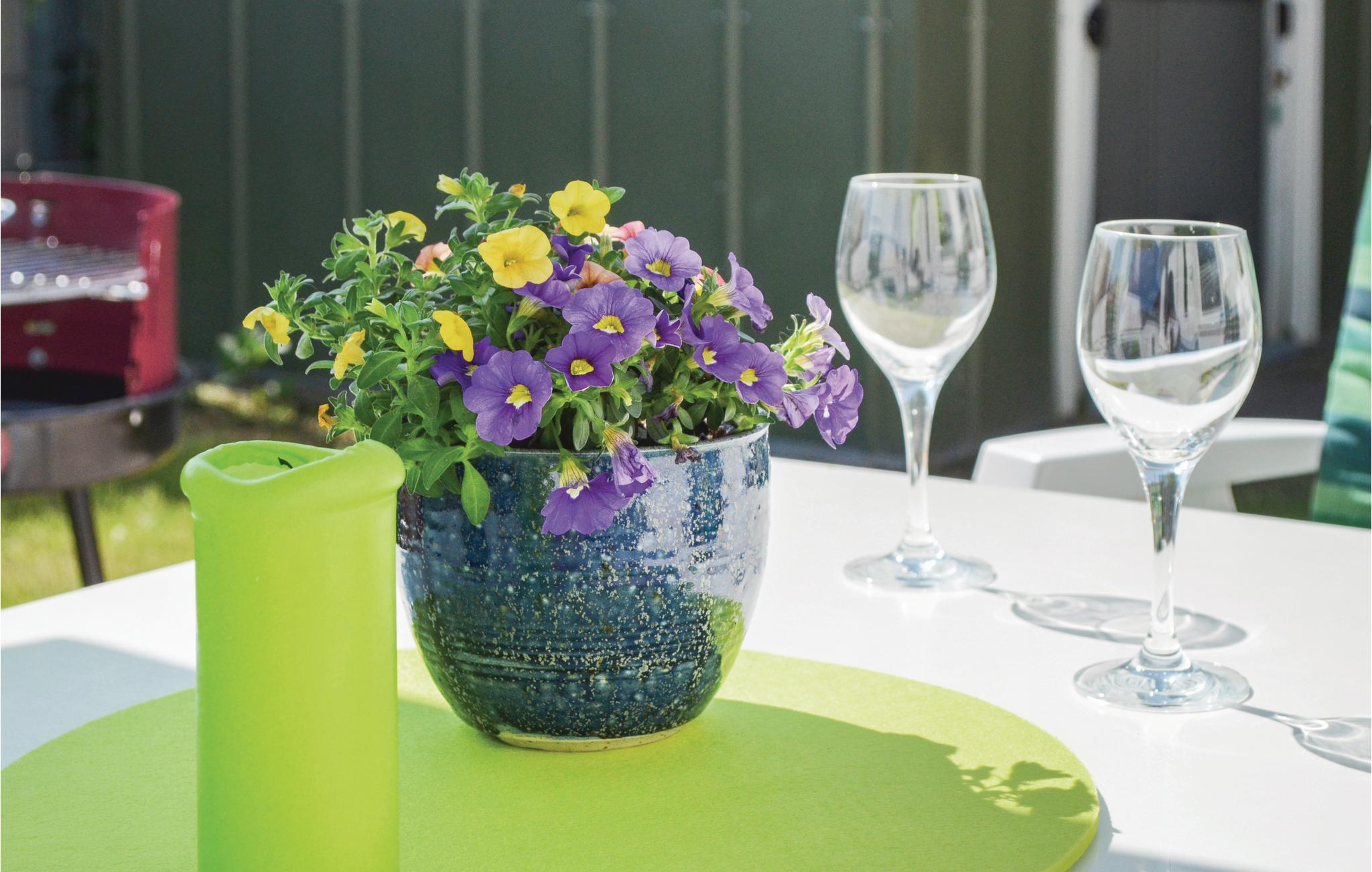 Koselig og praktisk innredet bungalow med åpen terrasse, som ligger i en helgebebyggelse nær sjøen. Fantastisk beliggenhet mellom hansabyen Wismar og Klützer Winkel. Wismar er omgitt av sjarmerende grønn natur, ved siden av det blå Østersjøen og den gule kystsanden. Byens egen badestrand, Wendorf, ligger bare tre kilometer fra sentrum. Brødrister, mikrobølgeovn med grillfunksjon og vannkoker er tilgjengelig. Se også DMK231 og DMK242.