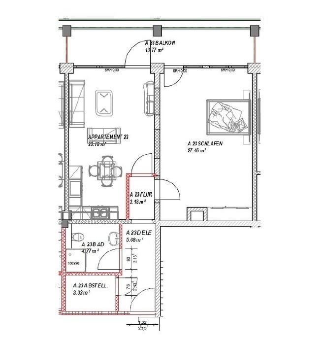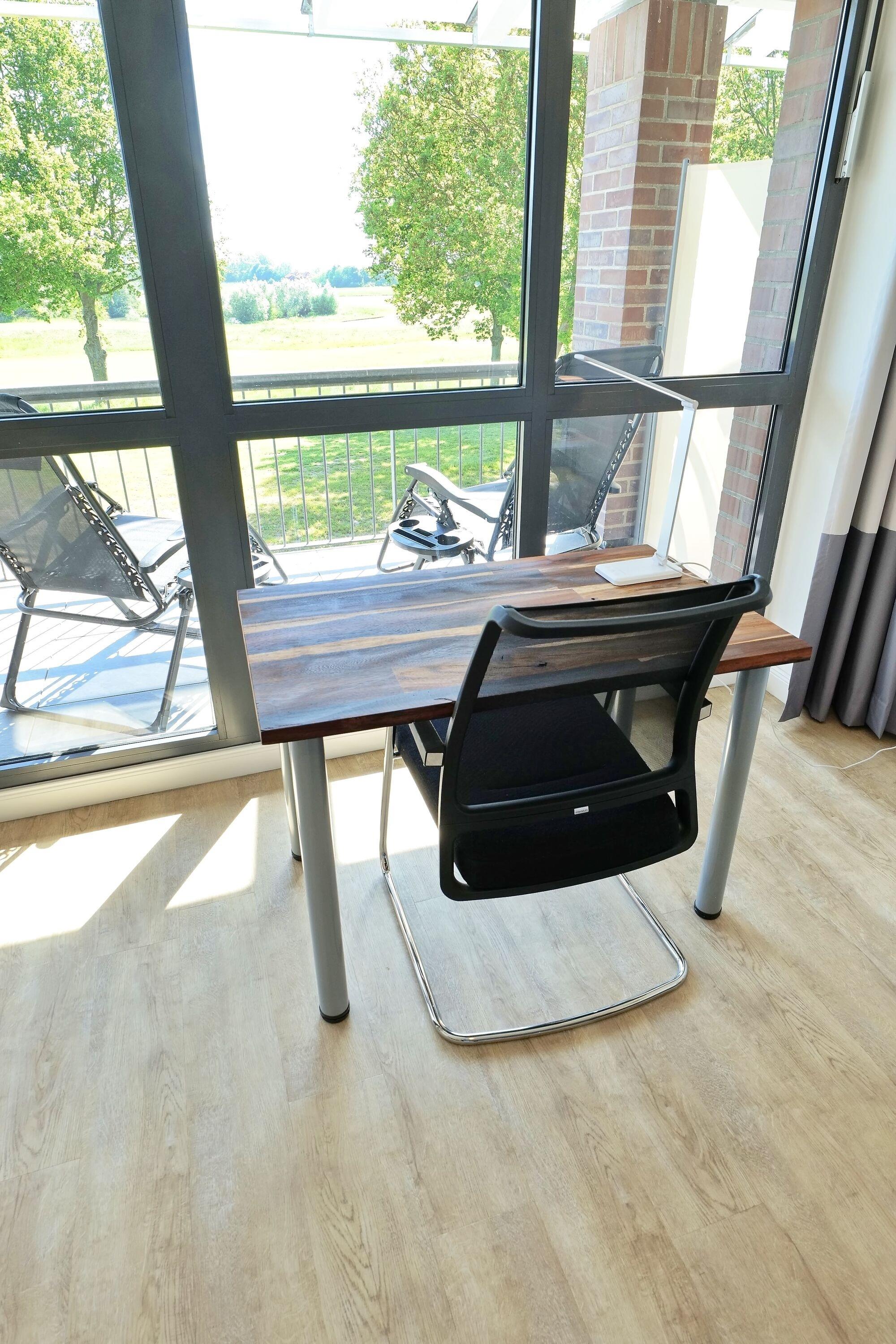 Es empfängt Sie ein gehoben ausgestattetes, zudem sehr geräumiges 2-Zimmer-Ferienappartement mit saisonal möbliertem Balkon. Der großzügige überdachte Balkon bietet einen schönen Blick auf den Golfplatz und weiter aufs Meer und die Marina. Eine komplett ausgestattete Küche lässt für Selbstversorger kaum Wünsche offen. Ein Schreibtisch mit einem bequemen Stuhl sowie ein Internetanschluss per WLAN erlauben auch die Ausführung beruflicher Aktivitäten. Die neu eingerichtete Wohneinheit mit einer offenen Küche, einem separaten Schlafzimmer, einem hellen Wohnzimmer, einem modernen Badezimmer sowie einem geräumigen Entree und einem Abstellraum, wo ein Lüfter, das Kinderbett und Kinderstühle geparkt sind, kann mit bis zu 4 Personen und einem Kind bis ca. 6 Jahren bewohnt werden. Mit dem Fahrstuhl gelangen Sie bequem zu Ihrer Ferienwohnung im Obergeschoss des Hauses.